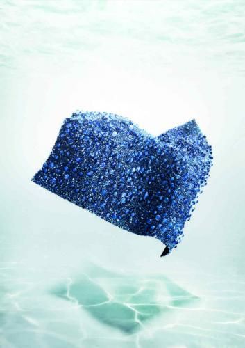 Crystal Galuchat - это сочетание кристальной ткани с кристальными шарами без огранки (2,5 мм и 3,5 мм), создана под впечатлением от образа ромбового ската, внешний вид изделия напоминает кожу этого животного. Благодаря разнообразию размеров кристальных шаров возникает эффект неровной, трехмерной,  но при этом гладкой на ощупь поверхности. Расхождение между внешним видом и тактильным ощущением от каждого узора создается за счет случайного расположения кристальных шаров.