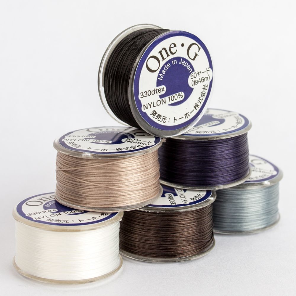 Нейлоновые нитки TOHO One-G характеризуются высокой прочностью — они практически не рвутся, разве что при работе с некачественным бисером с острыми краями. Поэтому мы рекомендуем использовать и бисер TOHO — он создается по технологии оплавленных краев, так что нить не будет ни перетираться, ни рваться.