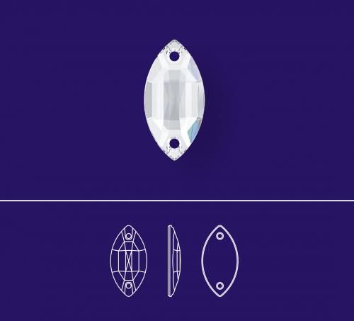Пришивные кристаллы Stellux арт. A320 Navette. Каждый страз снабжен отверстиями для пришивания, что делает возможным использовать эти кристаллы для декорирования любой одежды, а также сумок, портьер и прочих вещей, на которые их можно пришить. Их используют как самостоятельные элементы, так и в сочетании с бисером, и другими пришивными кристаллами.