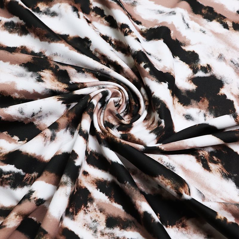 Эта ткань создана для тех, кто знает цену движению. Высокая плотность полотна, эластичность во всех направлениях, мягкость и упругая структура — всё это делает трикотажное полотно на основе полиэстера и эластана настоящей находкой для пошива купальников, костюмов, леггинсов, а иногда и цельных сценических нарядов. Благодаря сочетанию плотной посадки и ярких принтов ткань не просвечивает, даже в растянутом виде, оставаясь визуально целостной. Это особенно важно при работе с крупными узорами, клеткой, полосками и абстрактными мотивами, где требуется чёткая геометрия. Кроме того, Friedman отлично справляется с изгибами и объёмами: материал не деформируется, не даёт пузырей, не искажает пропорции изделия.