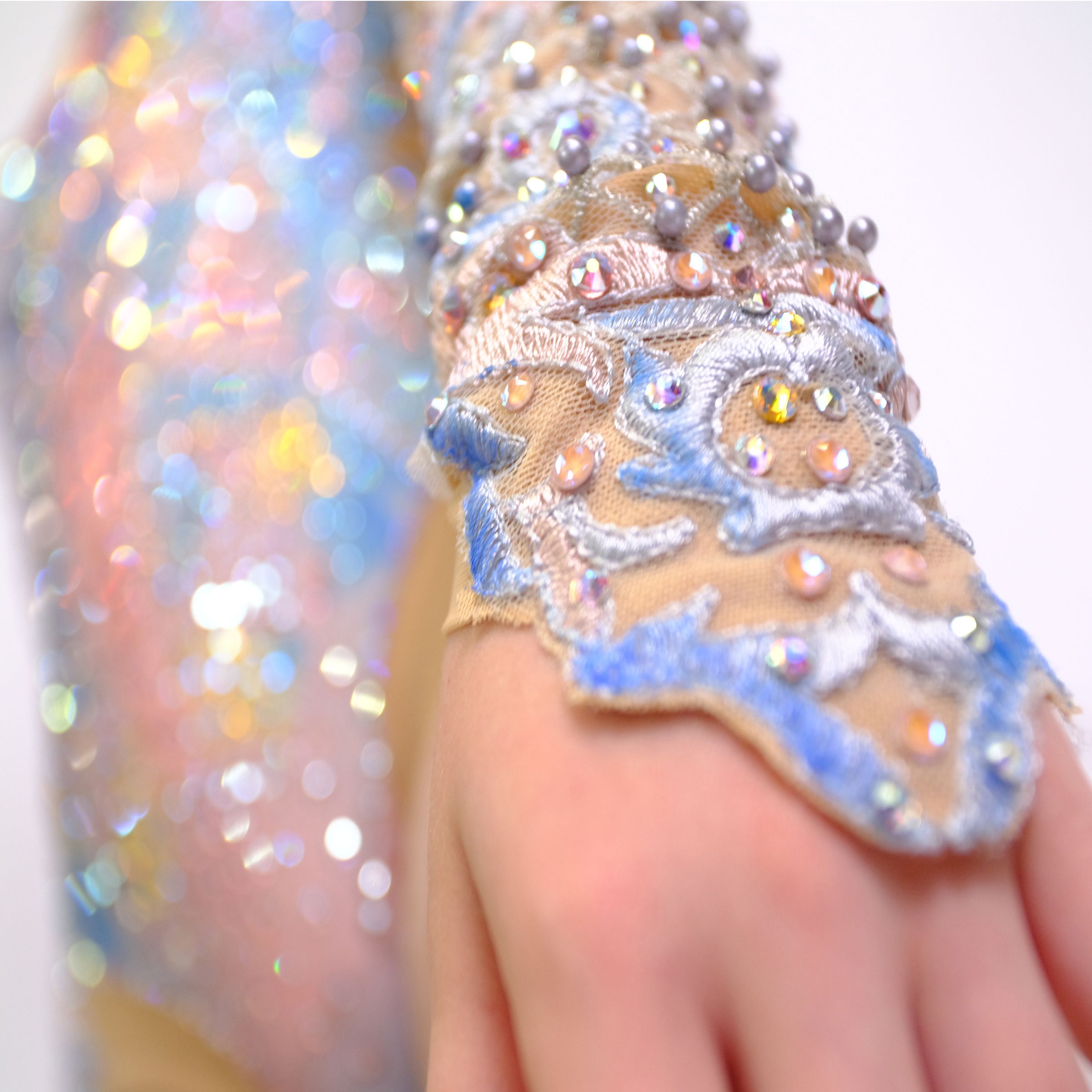 Купальник - это платье на бал для Золушки XXI в. Вдохновением послужила туфелька из одноименного мультфильма анимационной студии «Disney», которую  изготовила компания Swarovski. В сказке про Золушку была фея, а в нашей мастерской кристалл "превратился" в платье кропотливым трудом. Сказка в полной мере иллюстрирует тему конкурса, потому что рассказывает о том, что у любви нет преград, а также о доброте, милосердии и красоте как составляющих любви, и о том, что в жизни всегда есть место чуду. Кристальная любовь - любовь без границ. Эта работа мастерской - признание в любви к роскошным кристаллам Swarovski и к своему делу.