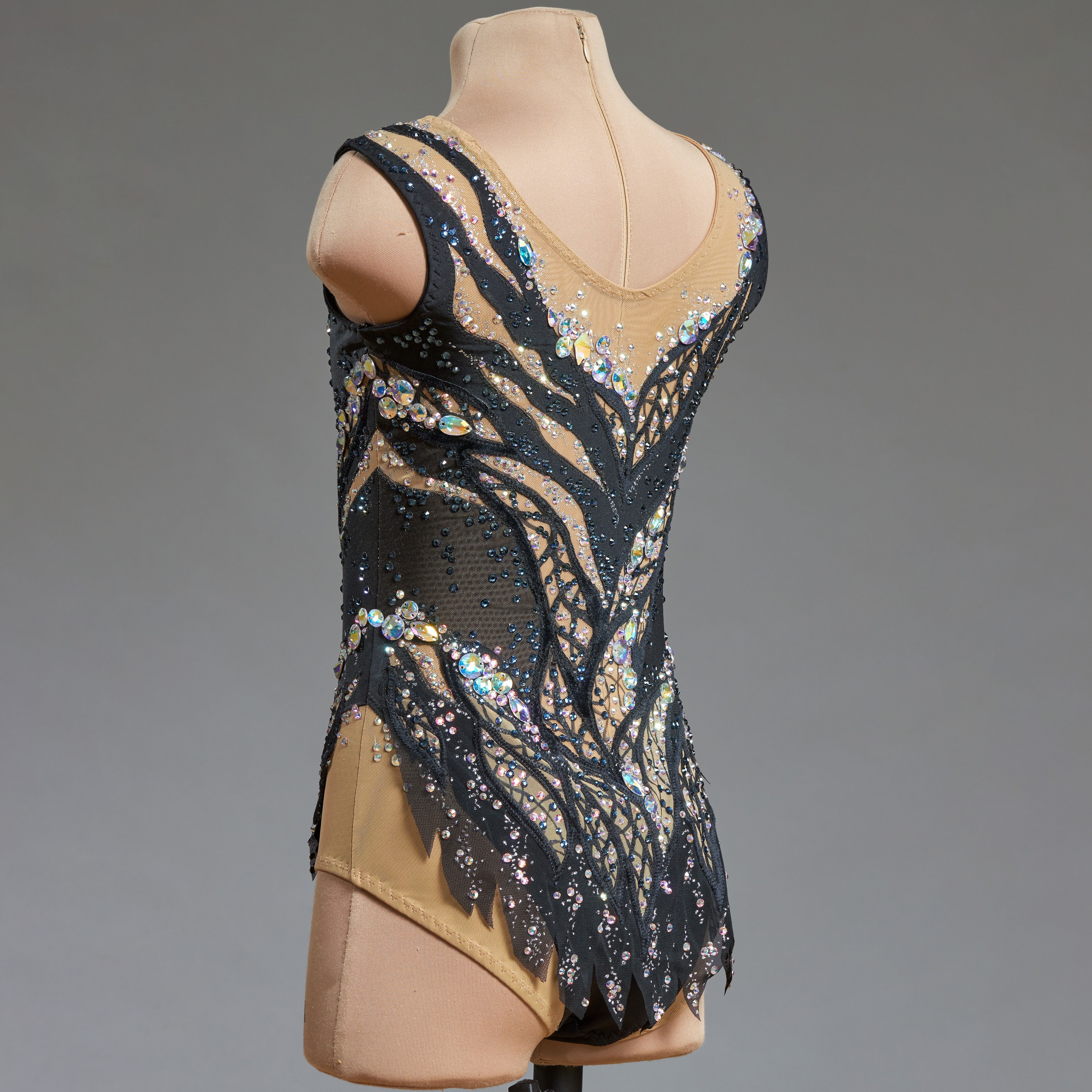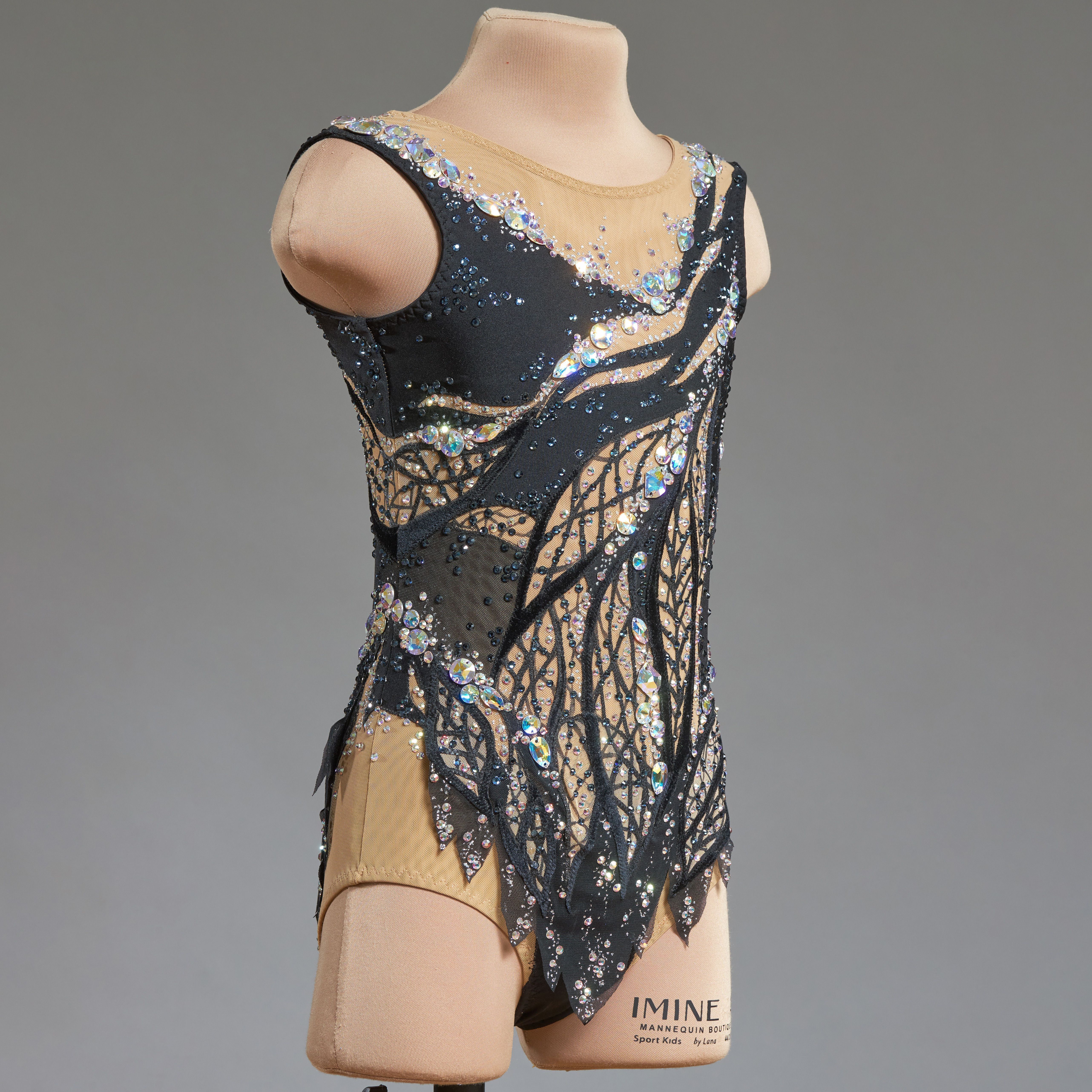 Всё верно, не влюбиться не возможно. Крошечные кристаллики, будто капли росы, разбежались по поверхности купальника. Растительный декор из листьев в центре композиции. Декор струится, подчёркивая фигуру и завершая яркий шикарный образ.