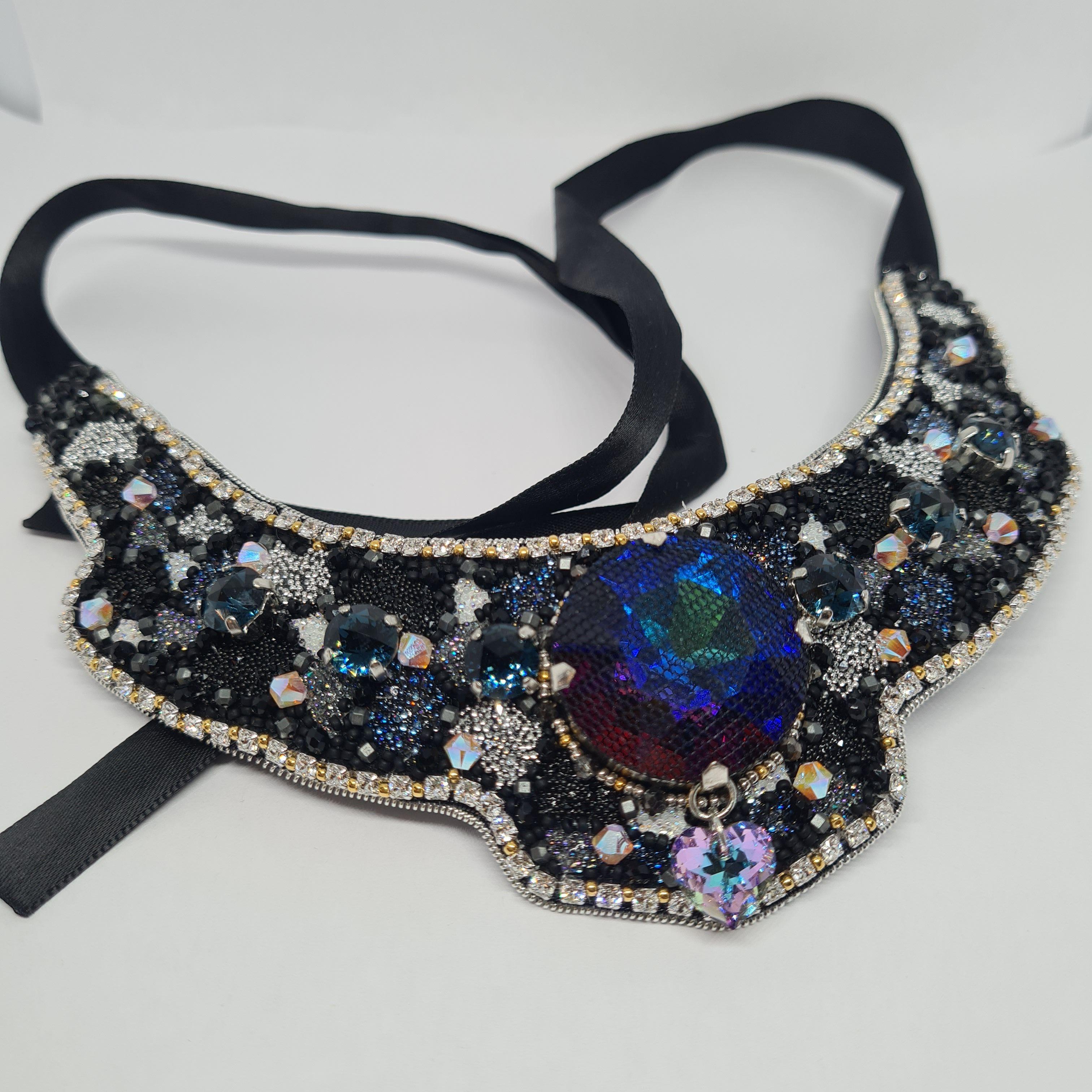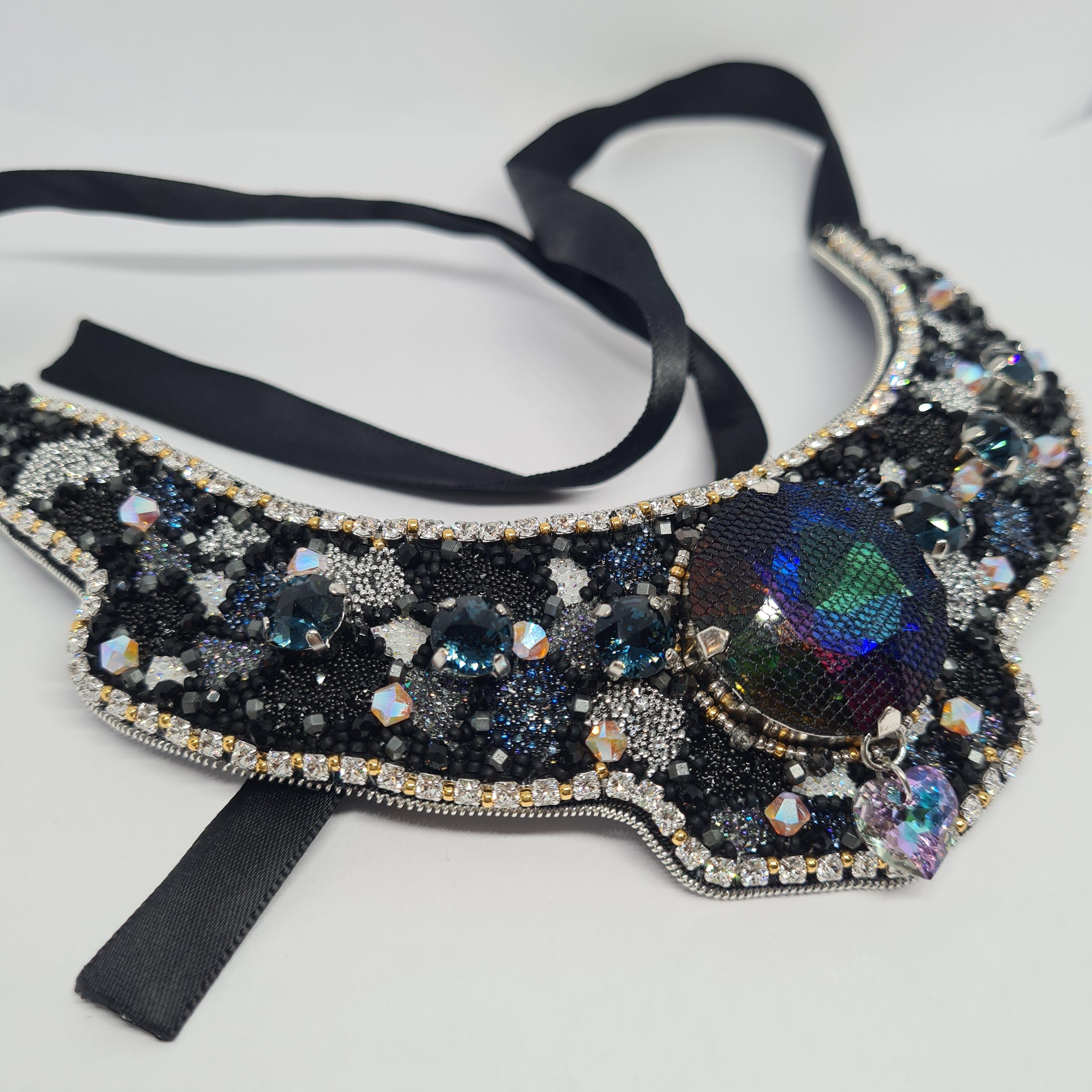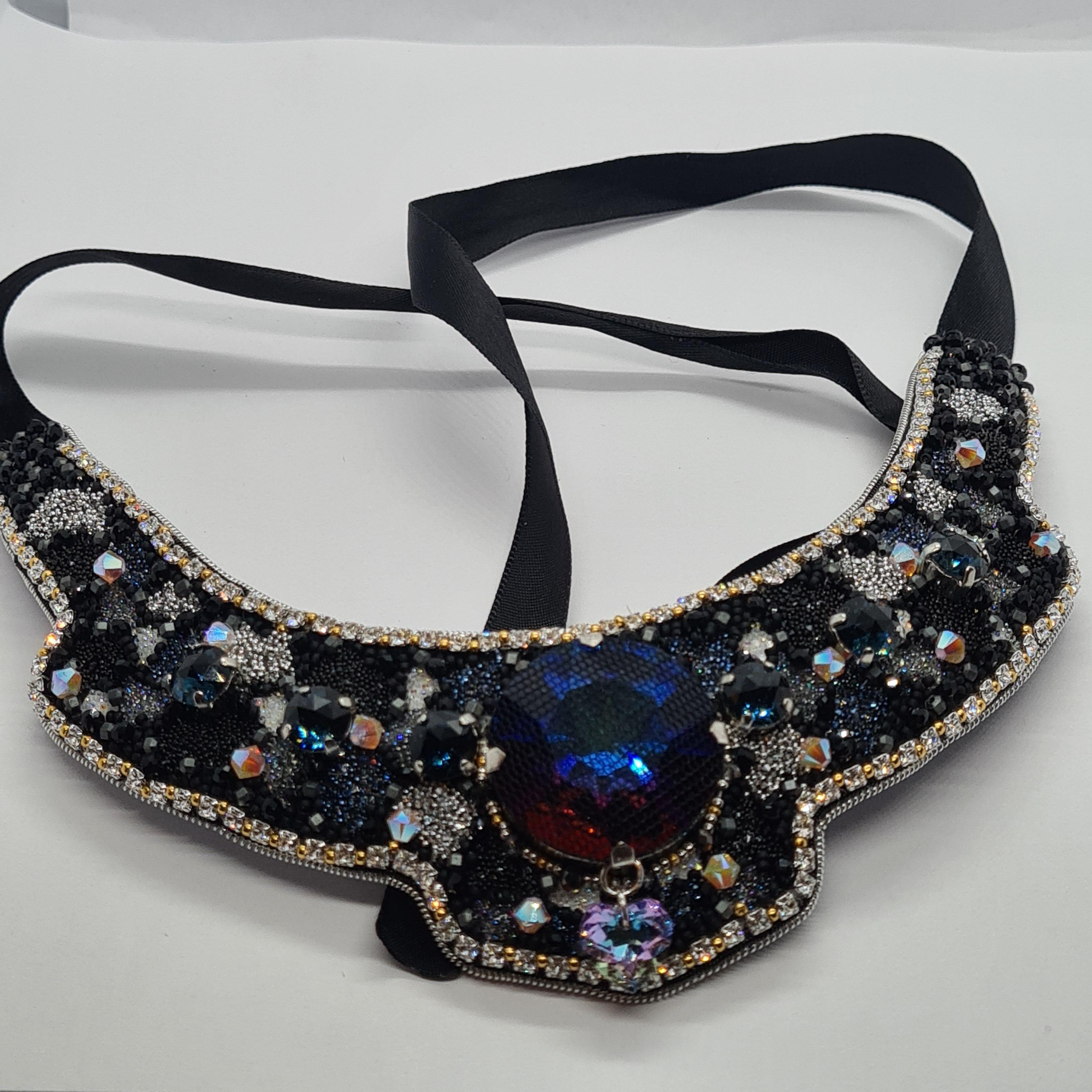 Из меня не получается хороший писатель и не очень умею презентовать свои украшения и аксессуары, но главное не то, как я умею писать, а то, что я вложила в это колье. Это мой первый опыт подобного изделия, мое первое колье. В нем собрано все, что я так люблю у Сваровски: критастальная ткань (я обожаю с ней работать, одно ее магическое мерцание и блеск сводит с ума), 1201 (мне кажется он прекрасен в любом цвете, да него можно просто любоваться), а цвет Montana у кристаллов волшебный. Как в моем изделии раскрыта тема конкурса? Для меня это любовь к своему творчеству, любовь к Сваровски и любовь к блеску.