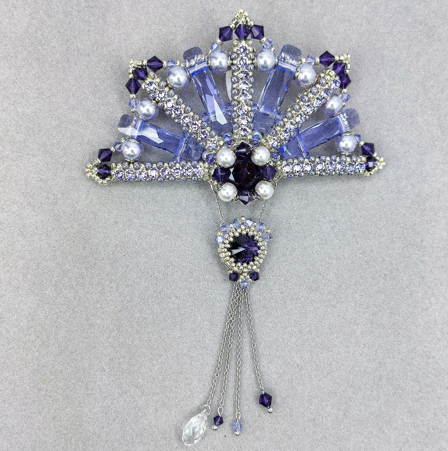 Брошь полность выполнена в технике ювелирного плетения. Благодаря прозрачности и веерному расположению бусин Column (two holes) брошь приломляет большое количество света и сохраняет деликатное сияние при любом ракурсе. Танец световых бликов на гранях создаёт особую магию...
