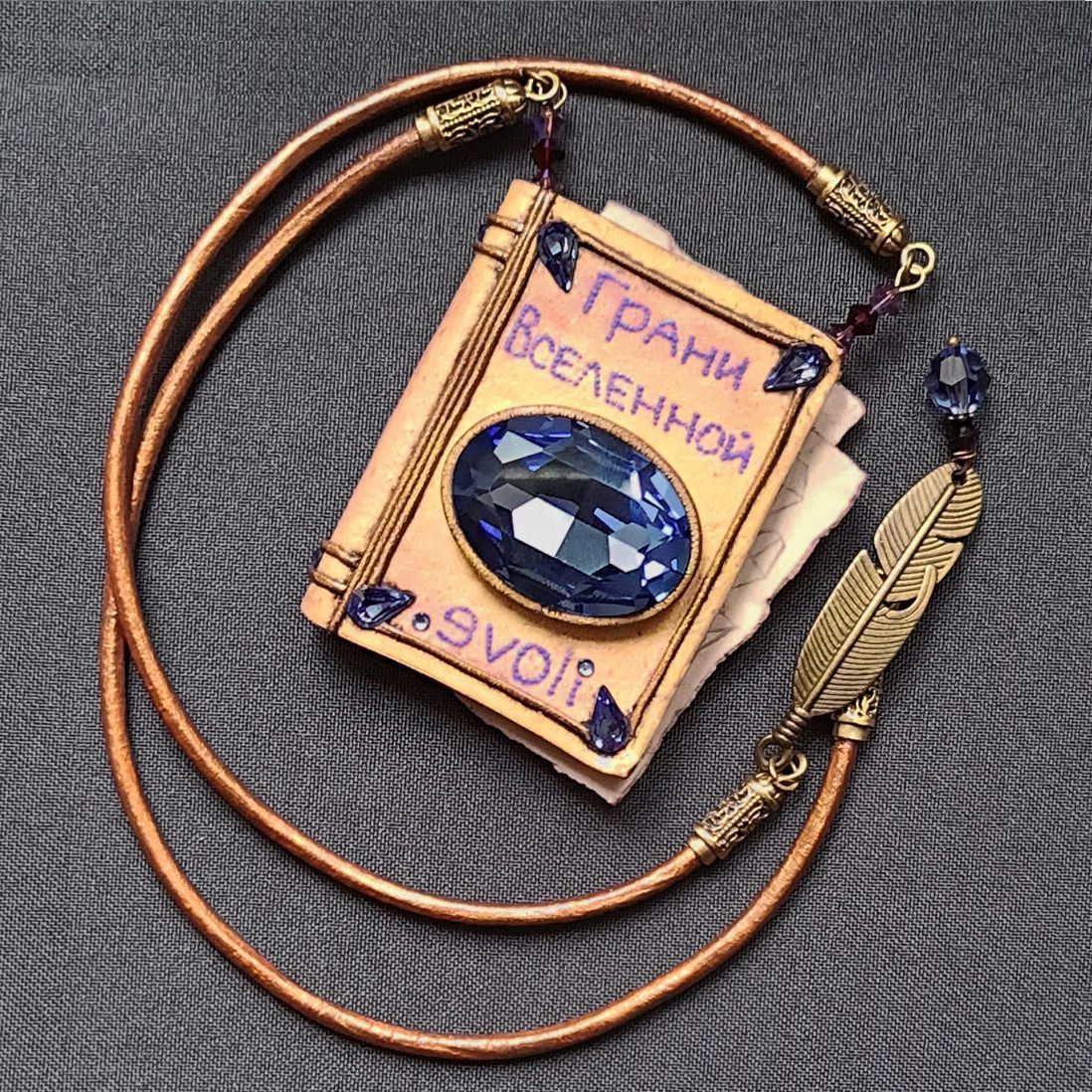 Первый, юбилейный том «Грани Вселенной .evoli» должен выглядеть именно так. Солидно, с роскошным кристаллом в центре, который так загадочно сверкает этими самыми гранями. В зависимости от образа, кулон можно носить и перевернутым, так он будет сиять россыпью мелких страз ,украшающих завитки филиграни. Только услышав название темы, я сразу представила, что это название книги. Сборник волшебных сказок про кристаллы. И обложка завораживает, хочется открыть и почитать. Узнать, что там написано и рассмотреть небрежно вложенные чертежи между страниц…