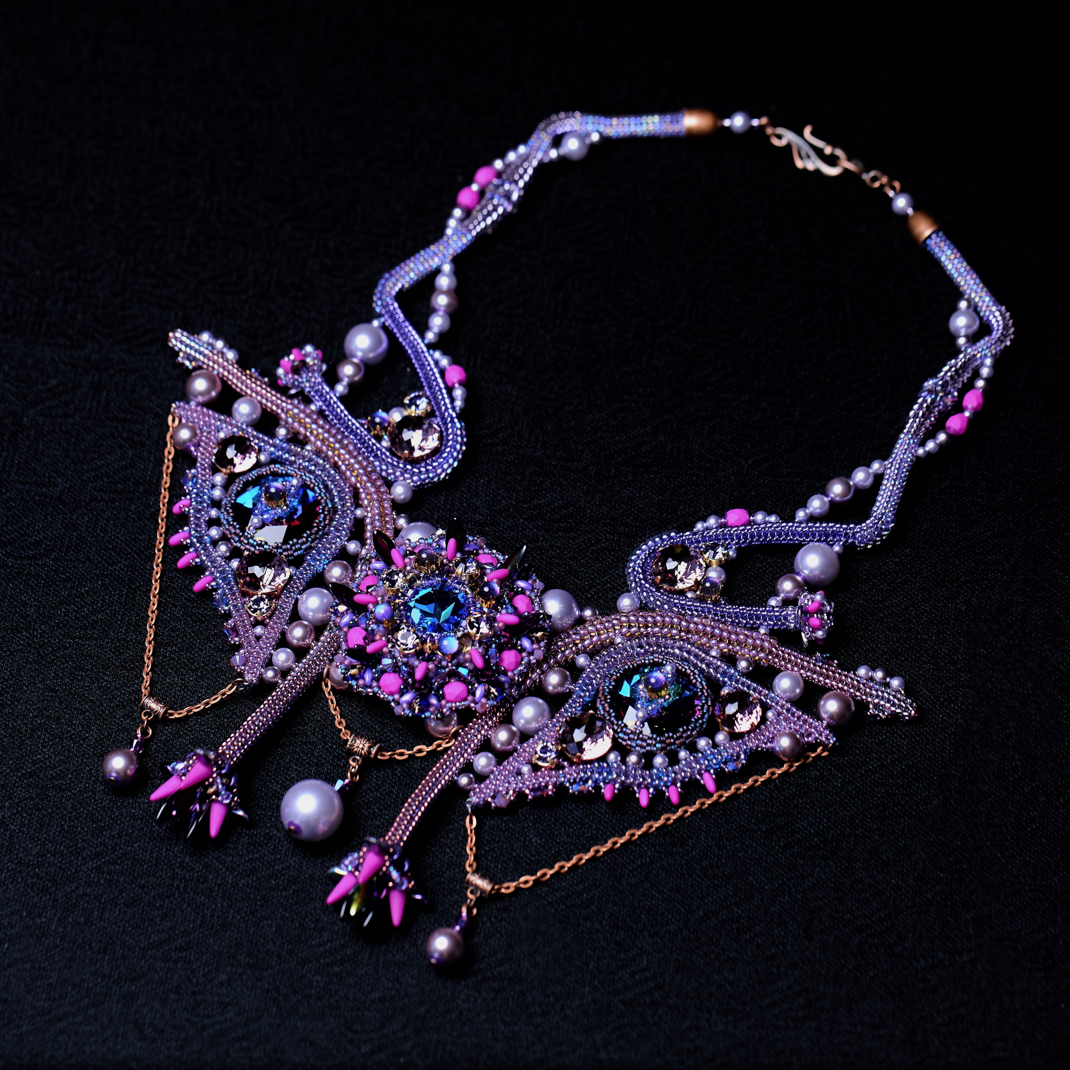 Приобретённый опыт позволяет создавать абсолютно немыслимые метаморфозы в моем внутреннем мире. Каков мой ментальный третий глаз? Он словно многоцветные фракталы, воспроизводящие сами себя в бесконечность. Эти формы, потоки спиралей и цветов отразились в центральном элементе моей работы. Симметрия глаз как органов зрения воплощена в боковых элементах. Потому что невозможно видеть шире и глубже, если нет способности видеть этот мир во всей своей живости и уникальности.
