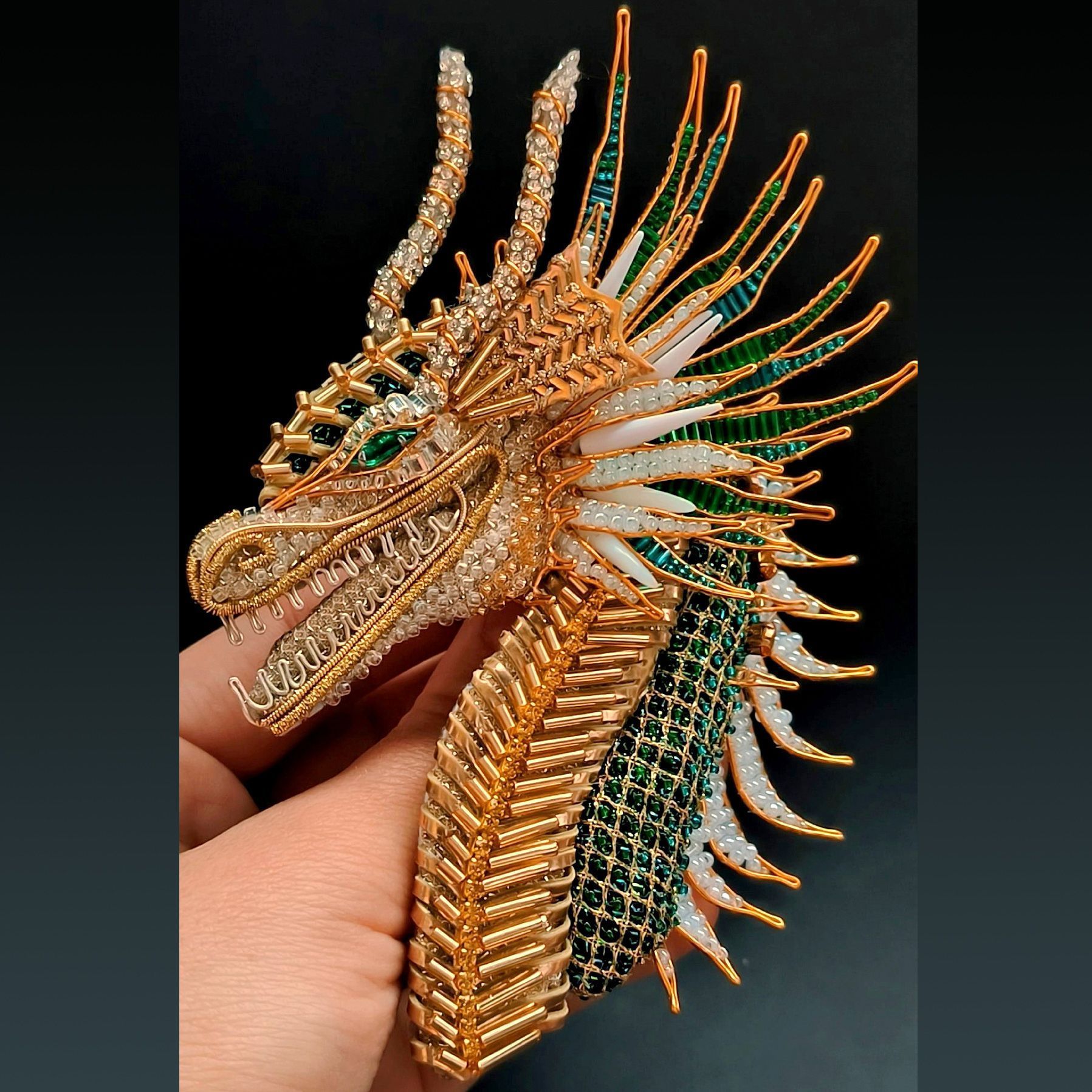 Брошь "Дракон Изумруд"