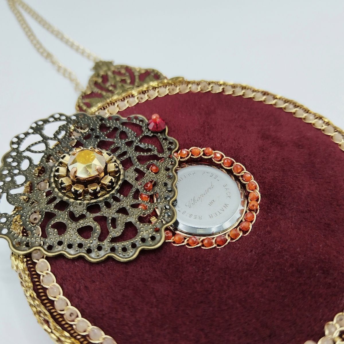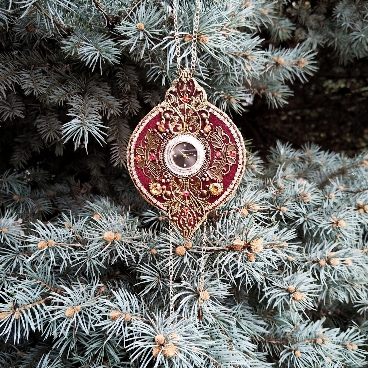 ЧАСЫ в винтажном стиле, на ходу. Можно подводить время и менять батарейку. В работе использован бархат, которому полвека. Новогодний набор "Сказка зимнего рассвета" использован частично.