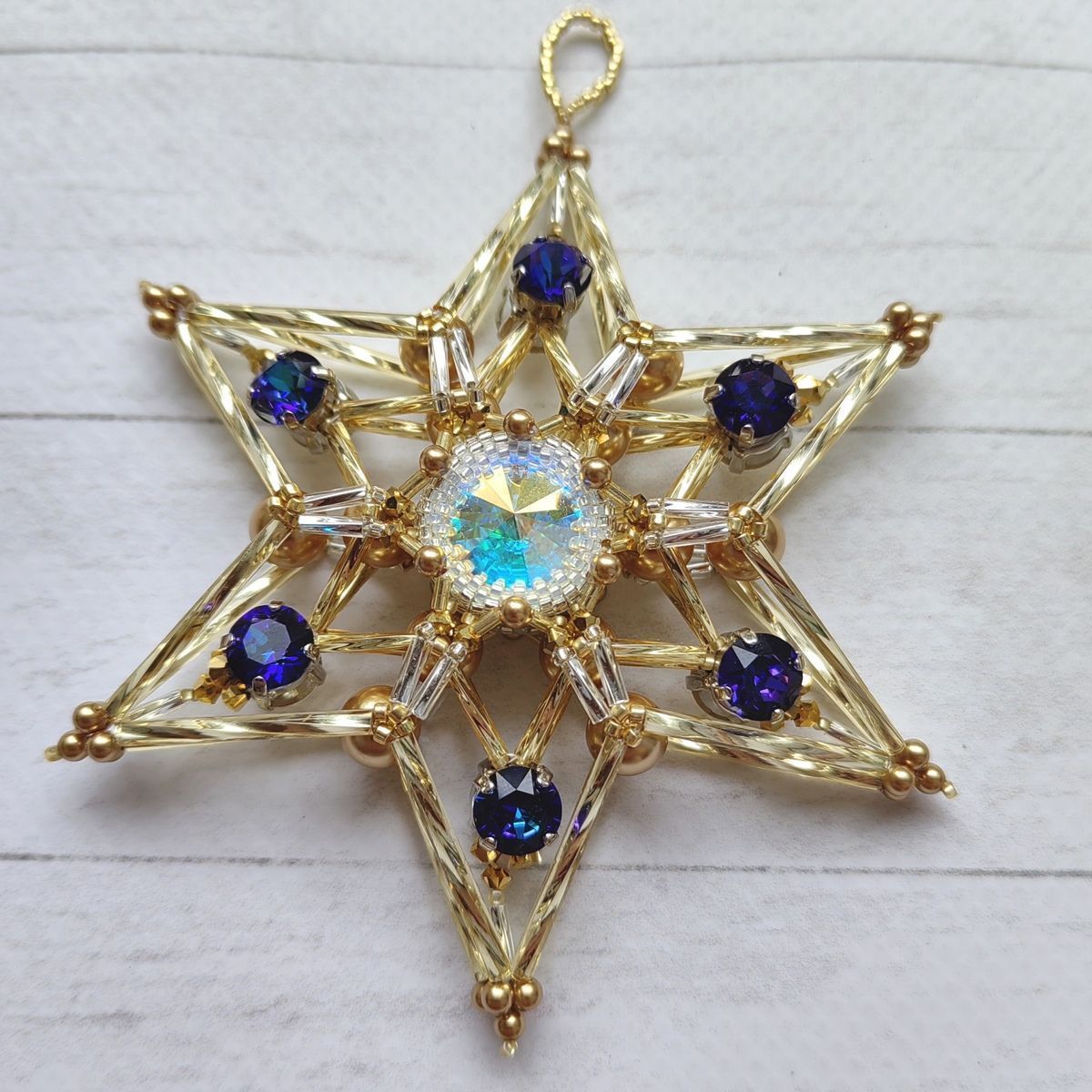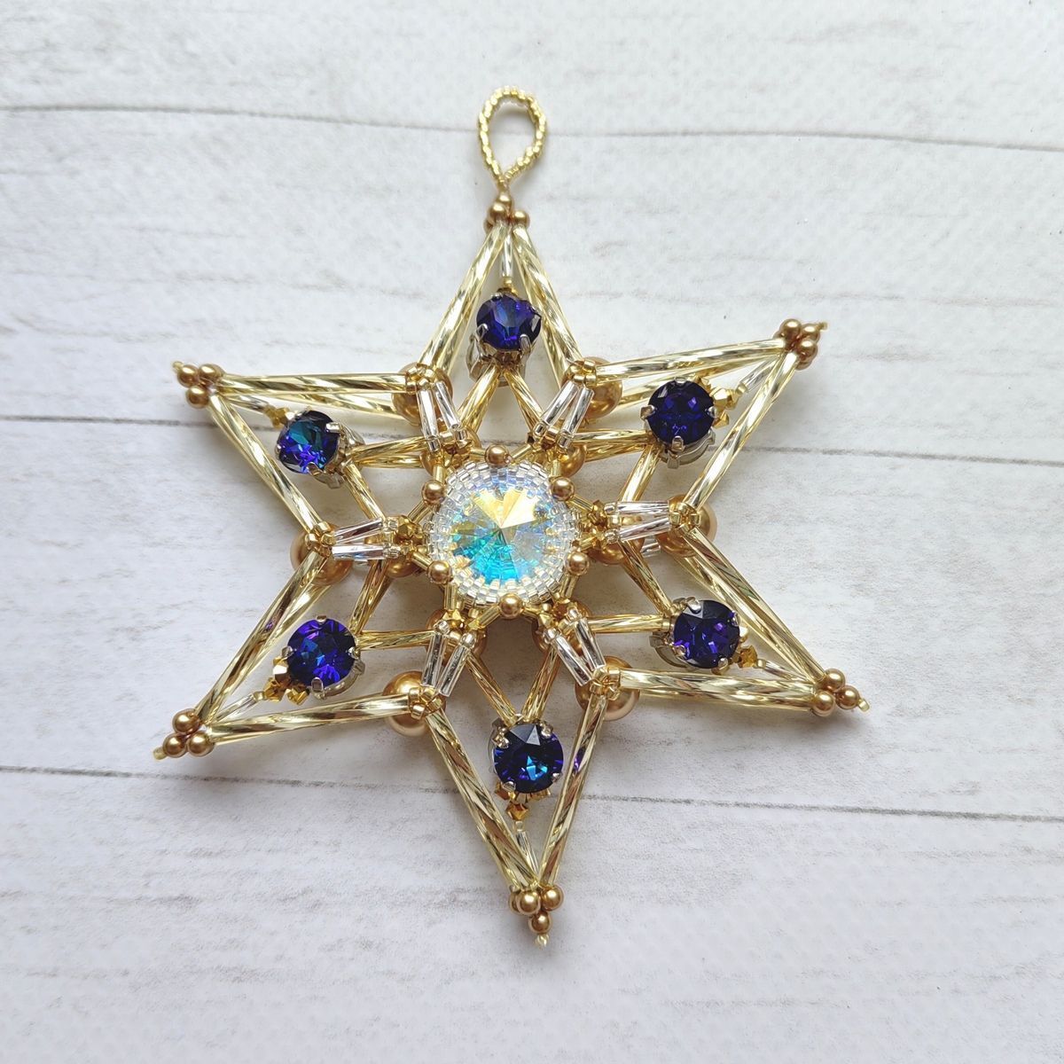Объемная двухсторонняя елочная игрушка "Звезда-снежинка"