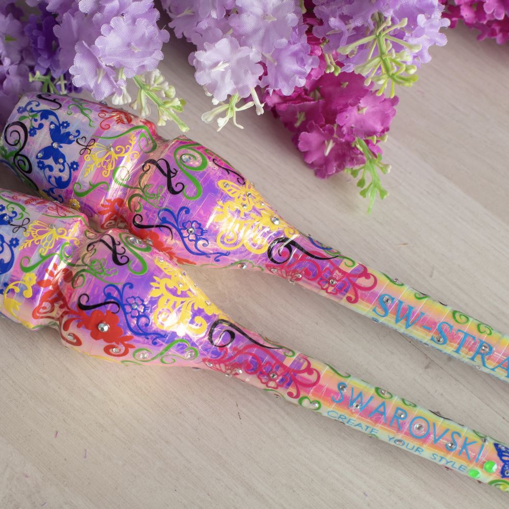 А Мода неукоснительно идёт вперёд, снова подсказывая нам: «Время сиять!» И теперь всё чаще встречаются в руках гимнасток предметы, от которых разбегаются по ковру те самые магические искорки непревзойденных кристаллов!