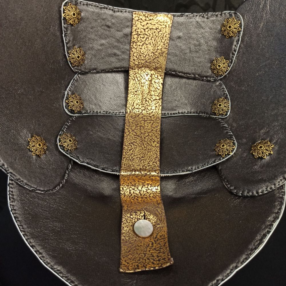 Я максимально постаралась сохранить форму наплечника готического немецкого доспеха. Все части скреплены штифтами и относительно подвижны.