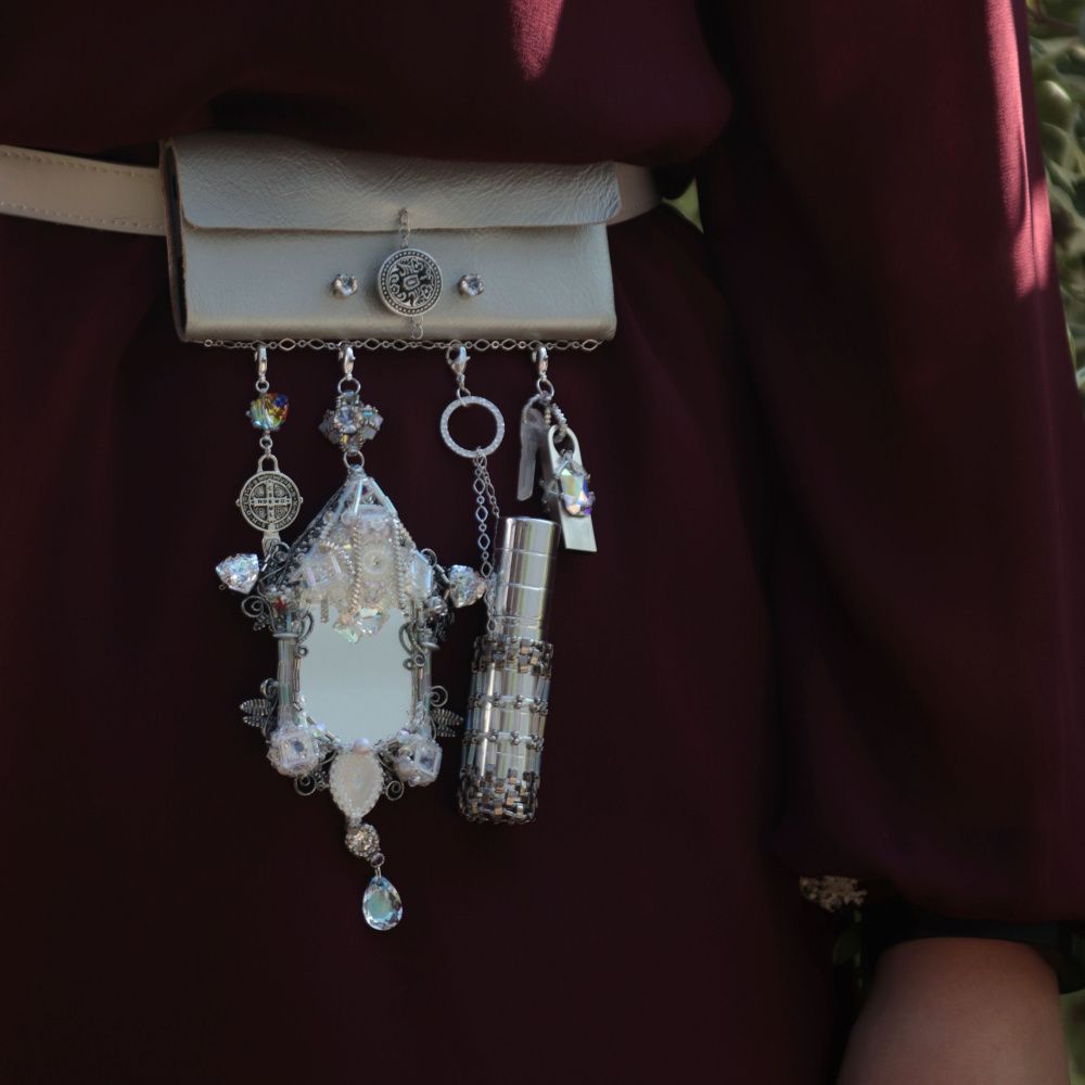 А что, если взглянуть на этот аксессуар по новому? Как выглядел бы шатлен современной девушки? Изящно, чтобы можно было дополнить им изысканное вечернее платье, но в то же время функционально. Здесь органично сочетаются классические средневековые элементы и атрибуты 21 века, что позволило раскрыть этот элемент с неожиданной стороны.