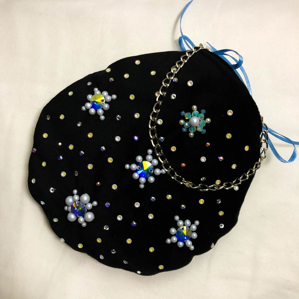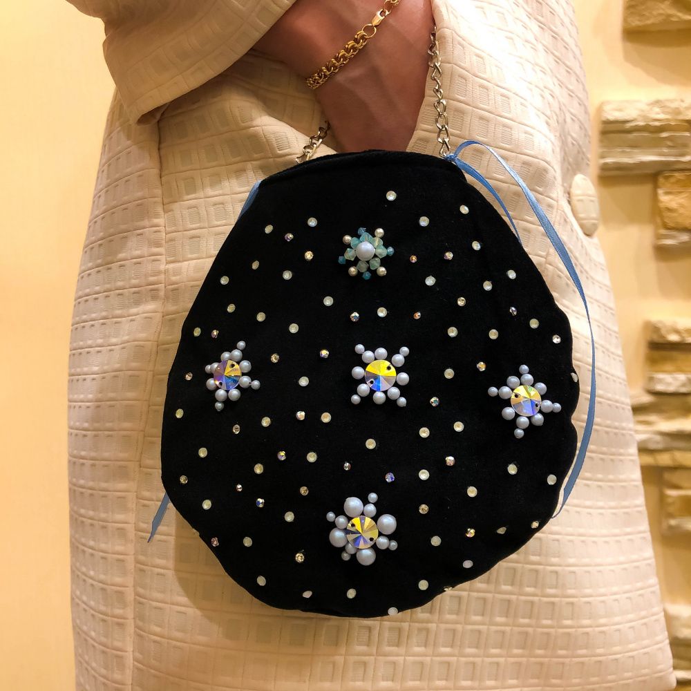 Бескрайние просторы космоса таят в себе множество загадок и удивительных открытий. Звездное небо над готовой впечатляет и любуясь им невольно задаешься вопросами, ответы на которые во многом находит именно воображение. Звездное небо вдохновляет и открывает путь для мечты и фантазии, для новых идей и порой что-то обычное, что-то давно известное и привычное, будь то какая-то вещь или давно обдуманная мысль или усвоенное знание вдруг начинает сиять новыми гранями и предстает в новом ярком интересном и необычном свете. Мир полон тайн и чудес, которые нам предстоит открывать всю жизнь, а сама жизнь многогранна и всегда, в любой момент готова нас удивить и порадовать. Именно сумочка, на мой взгляд, лучше всего сможет воплотить эту мысль, ведь эта обычная с первого взгляда вещь, давно всем известна и понятна, но в тоже самое время несет в себе всегда что-то новое и ее содержимое неизменно нас радует. Так и родилась бархатная сумочка «Сияние звезд».