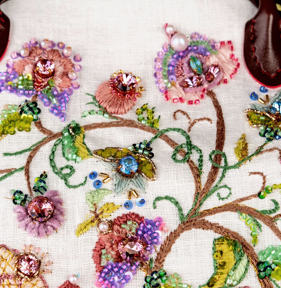 Моя сумочка была придумана специально для конкурса « Новые грани сияния» и создана показать красоту кристаллов из последней коллекции. Основной мыслью было раскрыть сияние кристаллов на фоне нитей для вышивки и натуральных тканей. В мире, который стремиться к природе в моду прочно вошли такие натуральные ткани , как лен, из которого и сшита моя сумочка. А традиционная ручная вышивка делает вещь самобытной. Кристаллы же в свою очередь добавляют нарядности, яркости, игры красок .