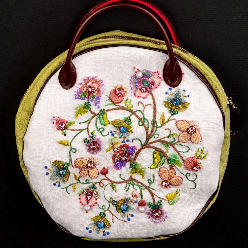 Сейчас модно выделяться – крупными украшениями, вещами ручной работы. И мне кажется, что моя сумочка сделанная полностью вручную , дополненная якобинской вышивкой в центре которой уютно расположились конкурсные кристаллы полностью соответствует современным тенденциям моды.