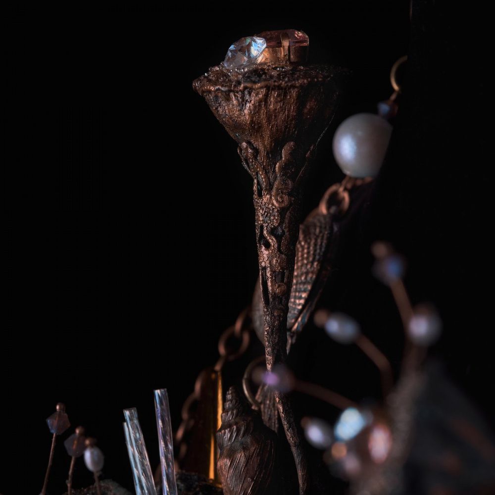 Основная идея украшения состоит в применении сравнения, как художественного приема. Думая над темой конкурса я решила, что человек всегда ищет новое, новые грани, будь то грани сияния кристаллов или новые грани человеческой души.