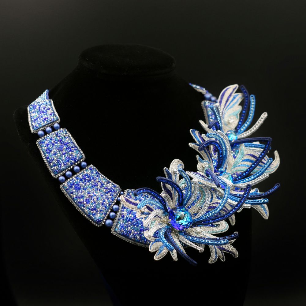 Посмотрите как сияют ШИКАРНЕЙШИЕ кристаллы 1400 Dome Round Stone Crystal Bermuda Blue, а вышитые необычной формы элементы вокруг кристаллов добавляют им новые грани.