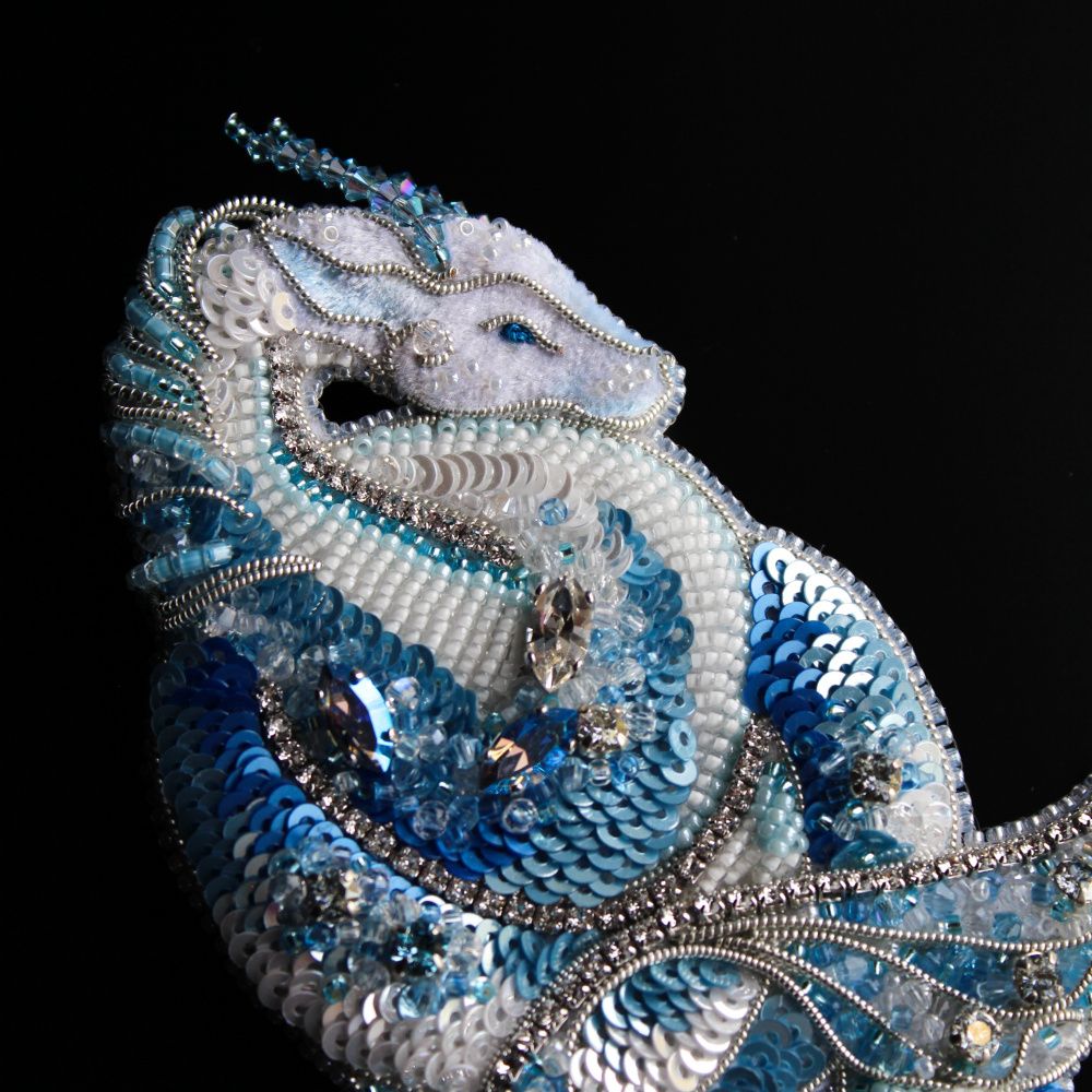 Выбранный цвет изделия не случаен. Что рисует Ваше воображение, когда вы думаете о владыке водной стихии? Возможно вы увидите кристально чистую горную речку или водопад, мерцающий под солнечными лучами? Может быть это тихая и сияющая гладь озера или бескрайний голубой океан? В своей работе я попыталась собрать воедино все эти оттенки.
