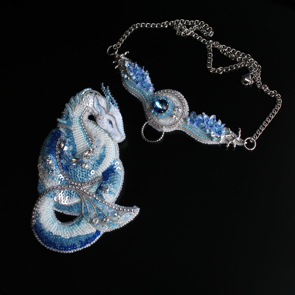 Культура Востока, ее живопись и легенды, повествующие о призрачных, мифических существах, вдохновили меня на создание колье в образе хранителя реки. В Китае считается, что драконы – не злые и хищные змеи, как в других мифологиях. Они помощники, мудрые правители и многочисленные в своих ипостасях жители Поднебесной.