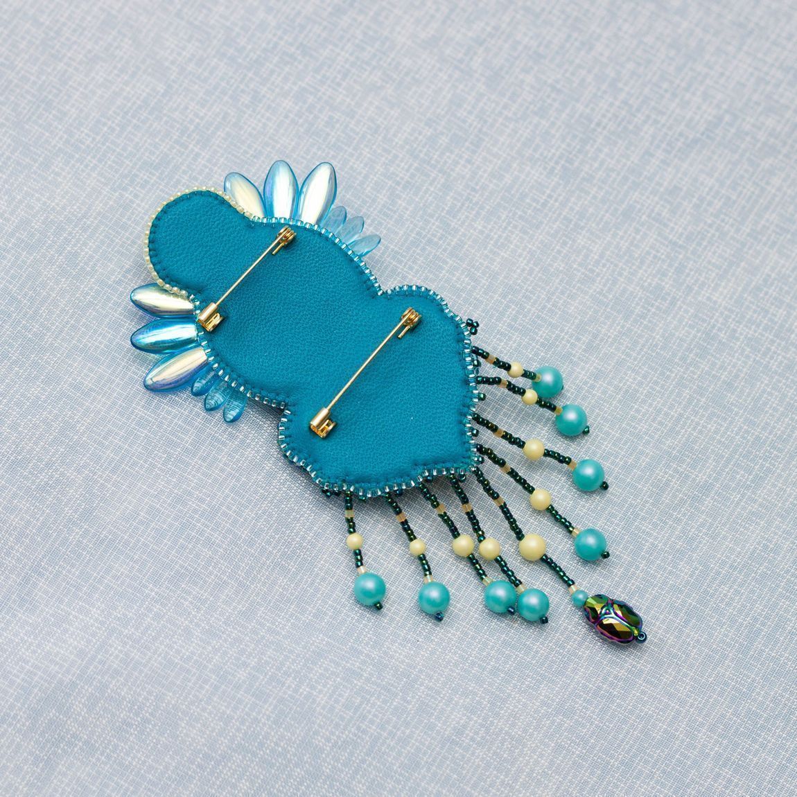 Брошь ХАТХОР - дуэт керамического кабошона и кристалла голубой электрик, который дополнили нежные оттенки желтого, мятного, бирюзового цветов кристаллов и жемчужин.