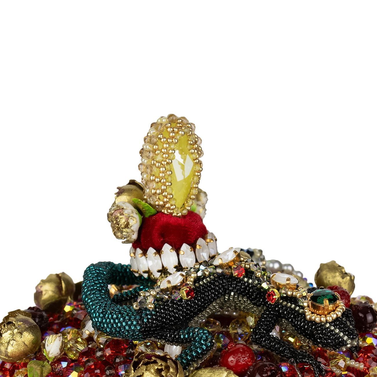Что захотелось создать образ Хозяйки медной горы. А именно придумать ее головной убор. Завершающим звеном тиары обязательно должна быть ящерка, которая превращается в девушку по сказаниям, хранительницу драгоценных рудников.