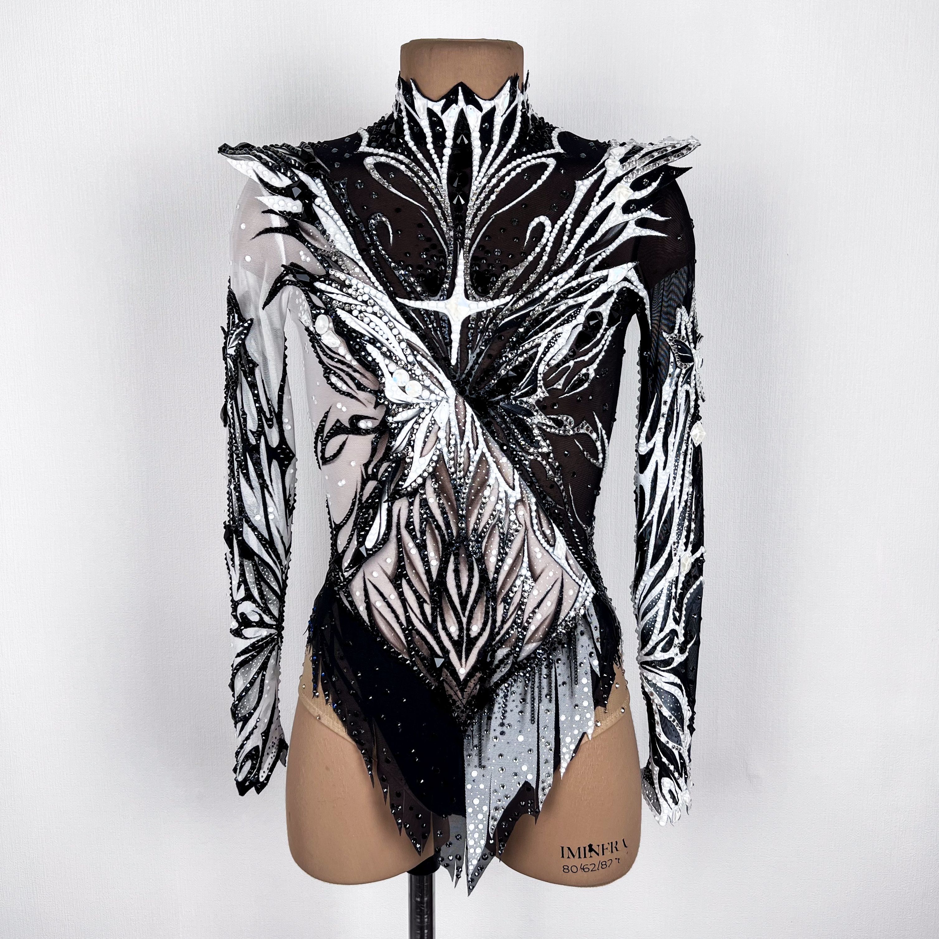 Бабочки - отражение природы зазеркалья - на костюме непривычно статичны, будто выставлены в галерее, как удивительные представители параллельного мира, не естественные для нас. А зритель подобно исследователю может рассмотреть этих чудесных существ в разной плоскости, под разными гранями.