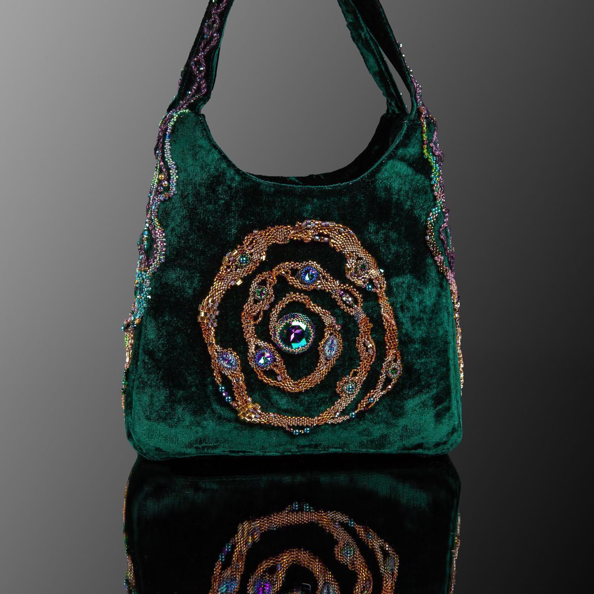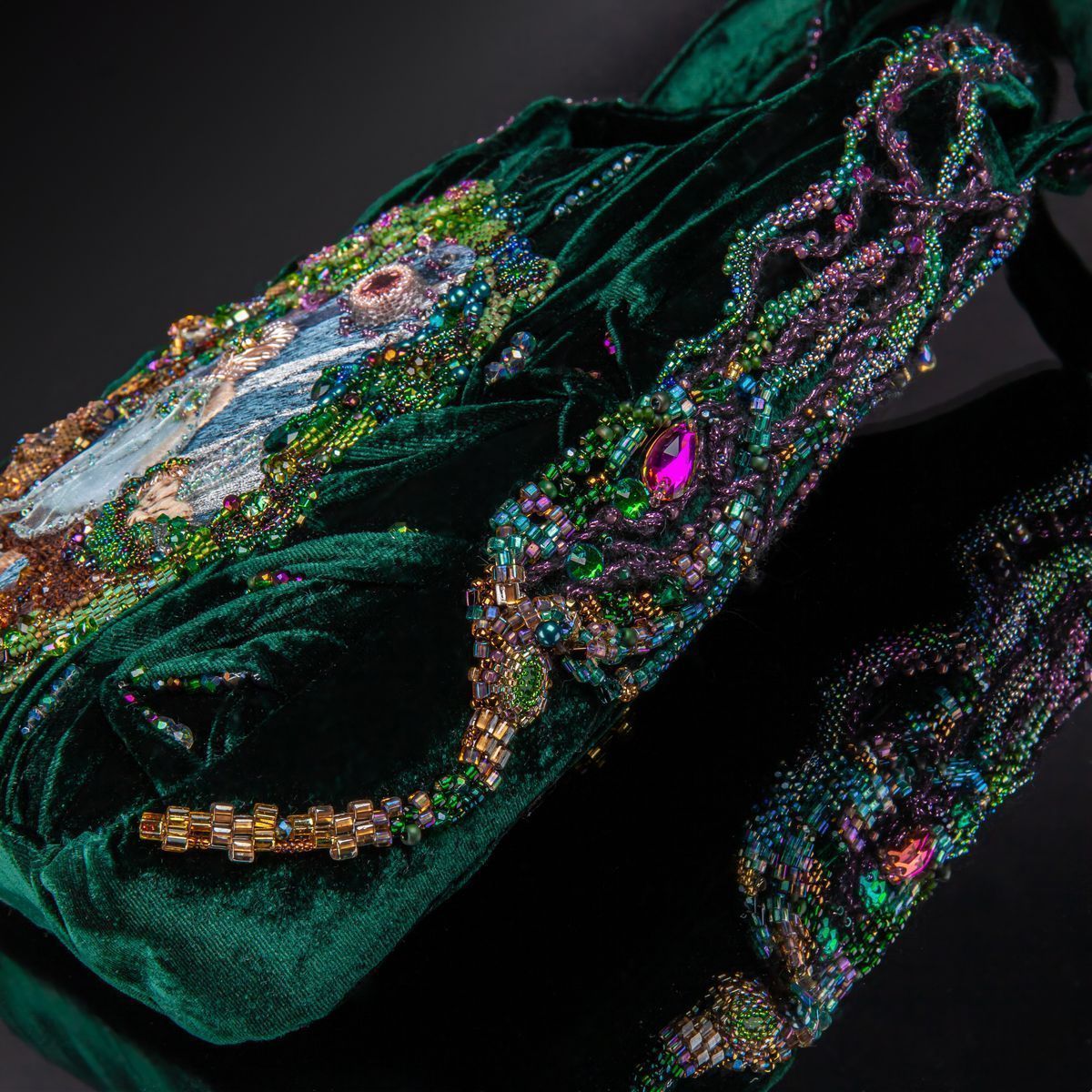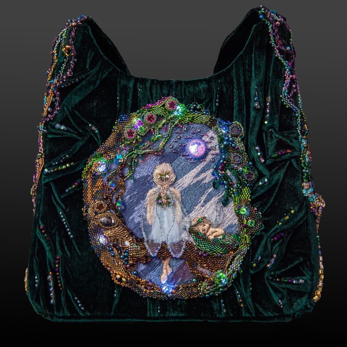 В дизайне своей сумочки хотела отразить загадочное и мистическое место в Зазеркалье, где можно встретить Фею. Фея - благожелательная волшебница, которая способна творить чудеса.