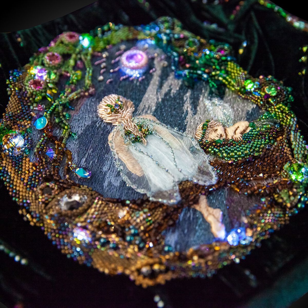 Фея любит наблюдать за звёздами и мечтать о том, что может произойти в будущем. Но иногда чувствует себя одинокой и потерянной, глядя на свет, идущий с другой планеты. Фея не отчаивается и продолжает искать свой путь, не зная, что ждёт её впереди. Пространство в круге защищает от негативных воздействий и привлекает положительную энергию. Она готова к любым испытаниям, тем более рядом в колыбельке сладко спит новорождённая фея, настоящее чудо природы, которое напоминает нам о том, что жизнь полна красоты и волшебства.