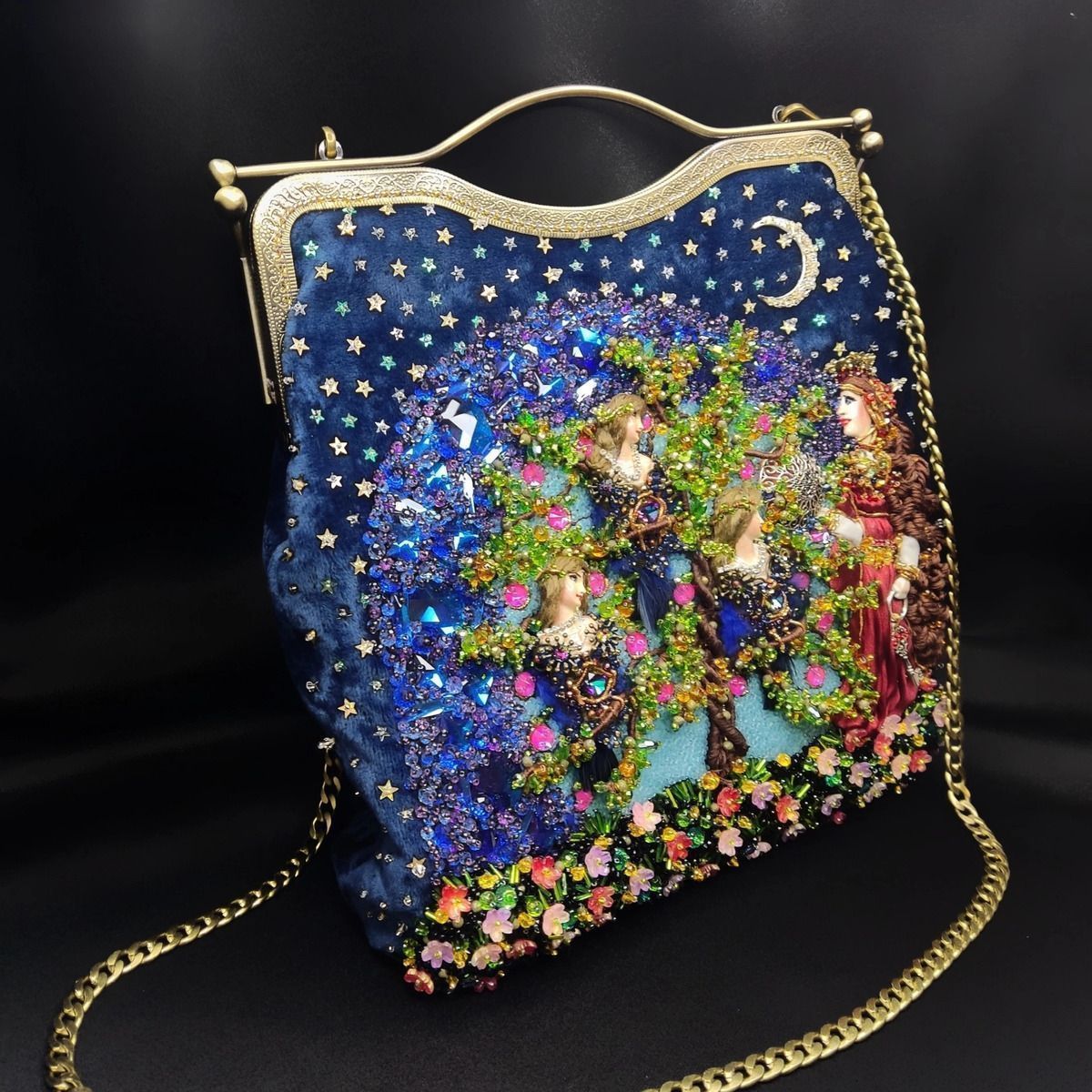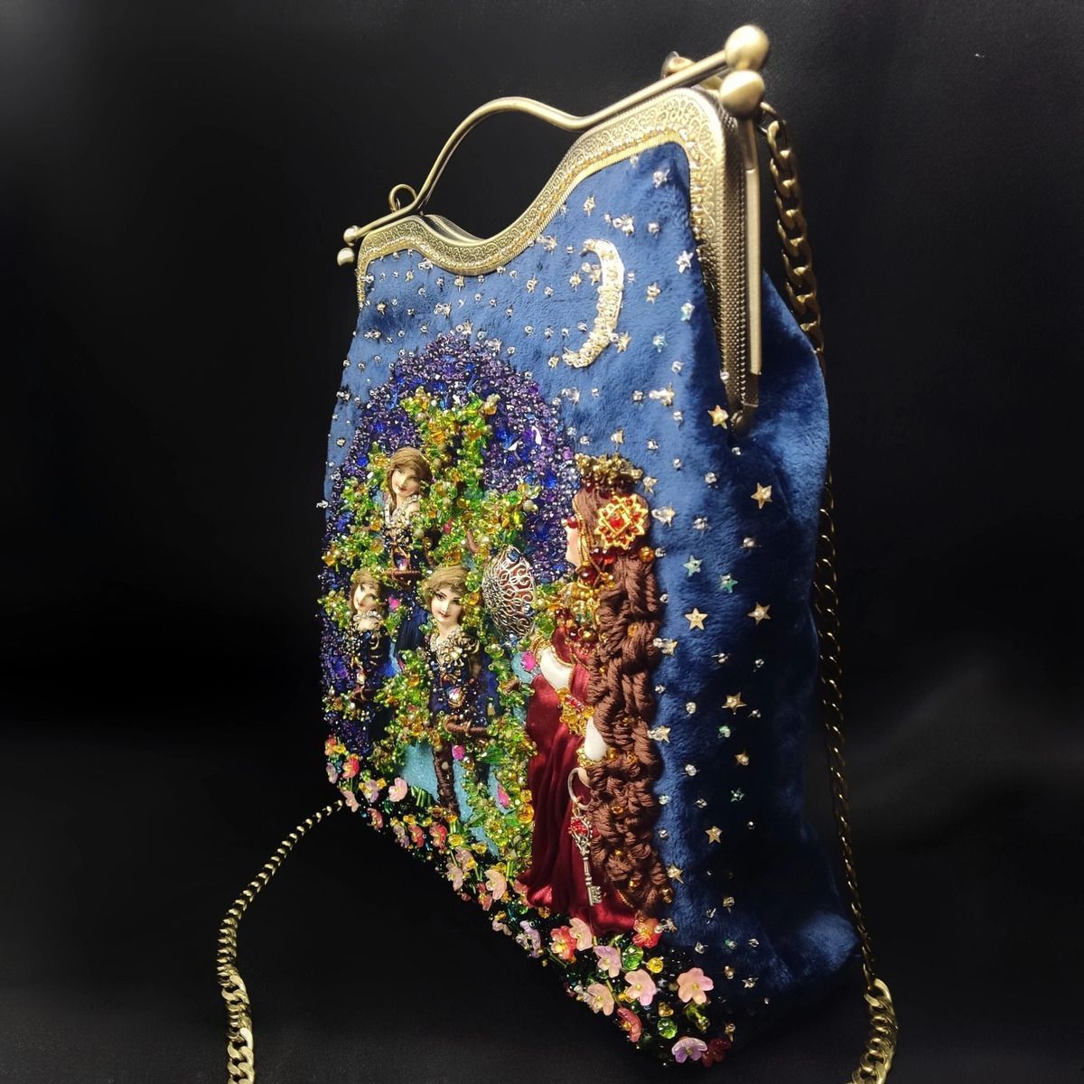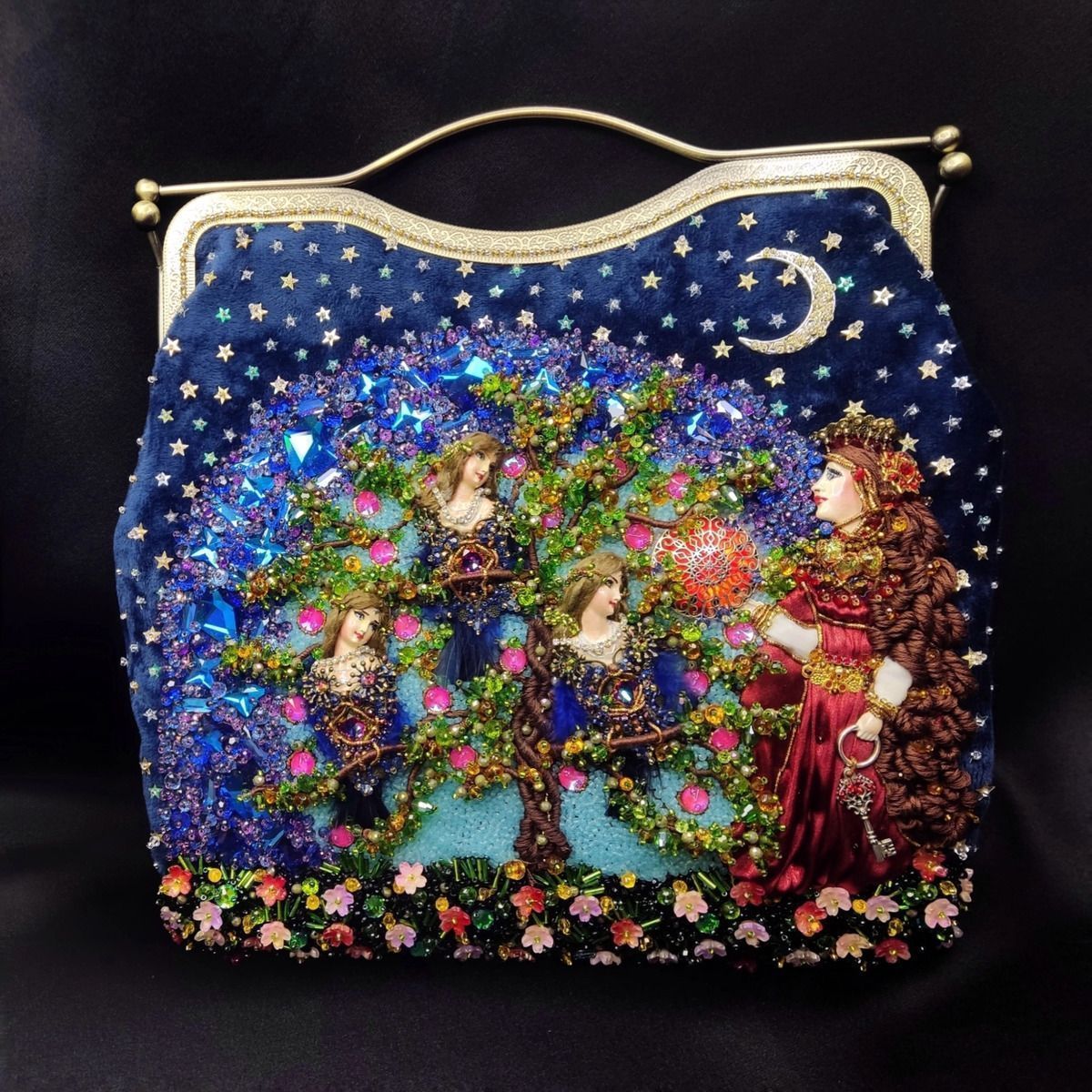 Хотелось изобразить  объёмную  вышитую "иллюстрацию".  Сумочка имеет блок питания и подсветку портала и лампы для ещё большей сказочности, праздничное настроение гарантировано. Увесистая 900 грамм.