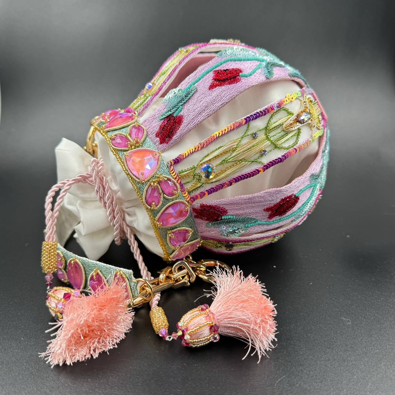 Когда-то феи подарили людям волшебный предмет. Они украсили его кристаллами, бисером, нитками и пайетками. Рисунки напоминали витражи с цветами и весенние цветущие поля. Вдохновленные волшебными растениями, феи вложили в него частичку своей магии, чтобы каждый, кто прикоснётся к этому аксессуару, ощутил силу природы. Сверкающие кристаллы переливаются, словно утренняя роса на лепестках, а узоры из пайеток напоминают о крыльях фей, мягко скользящих среди цветов. Каждая золотистая нить — это след их лёгких, невесомых шагов.
