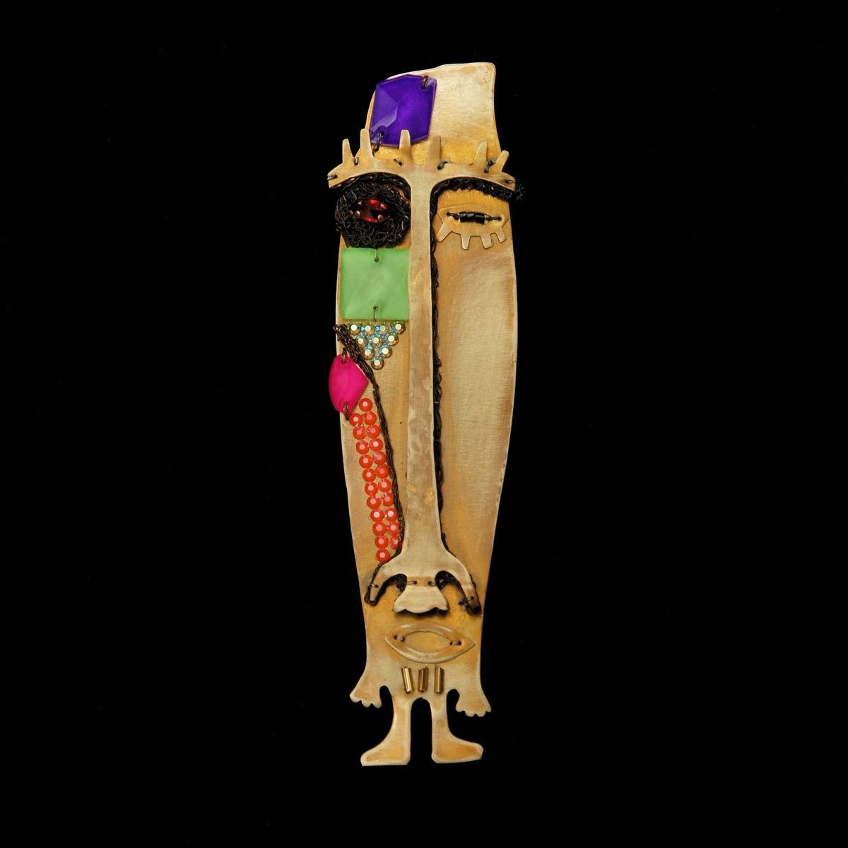 Крупная брошь в виде антропоморфной личины. За основу взяты личины, найденные в Казымском кладе в Сибири в 2014 г. Сокровища клада могут относиться как к периоду Кулайской культуры (быть современниками скифов и сарматов), так и являться материальными свидетельствами существования ранее неизвестного народа на территории Сибири.
