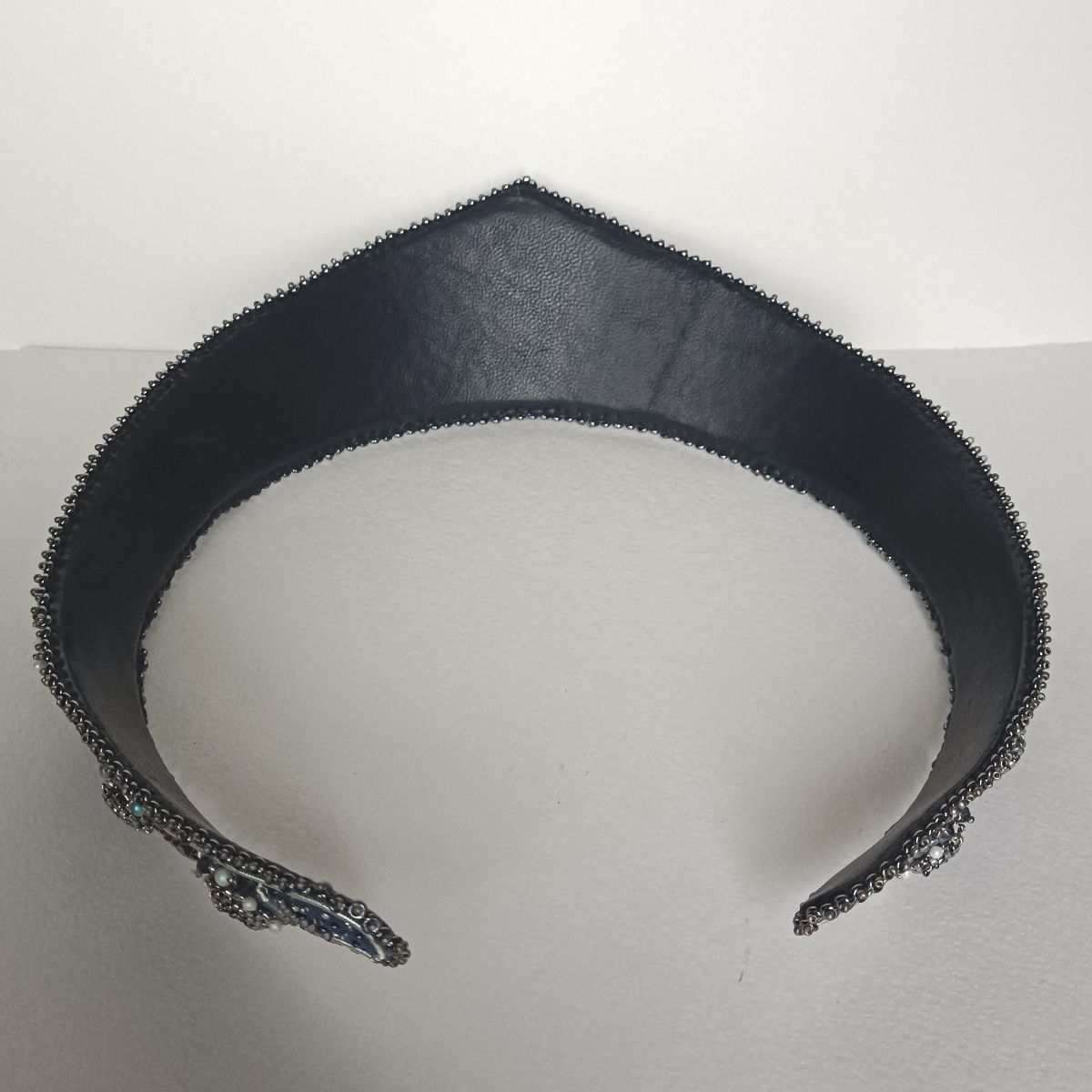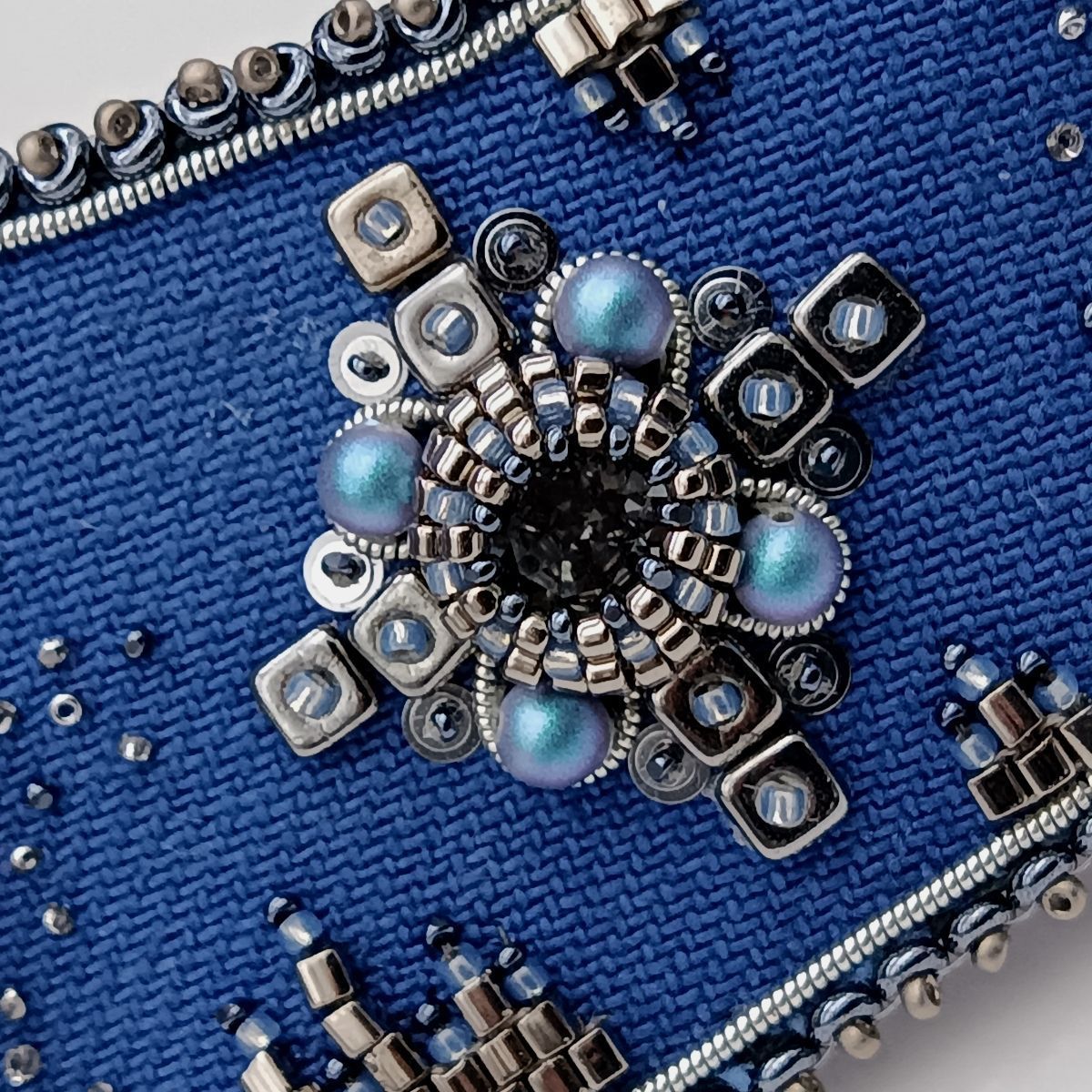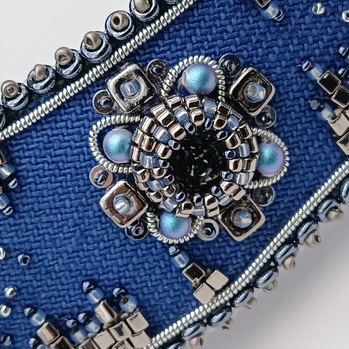 В диадеме «Красавица мегаполиса» объединились: джинсовая ткань, сохраняющая свои позиции в современной моде, кристаллы и жемчуг Swarovski, которые с успехом заменили натуральные жемчуг и драгоценные камни. Кристаллы цвета Sky Ignite и Silver Night красиво мерцают на фоне синего денима.