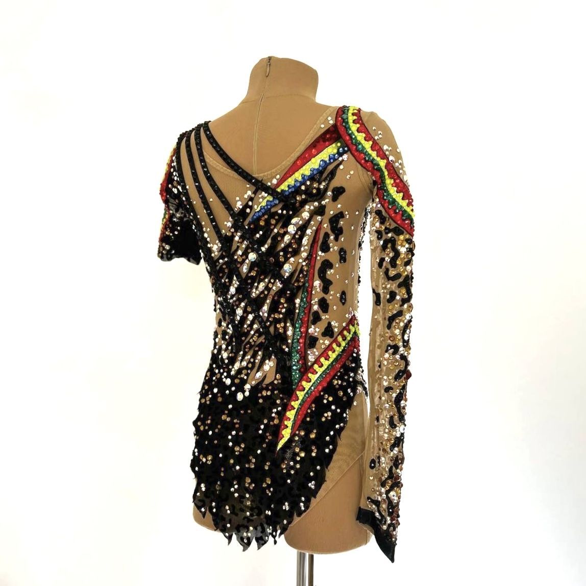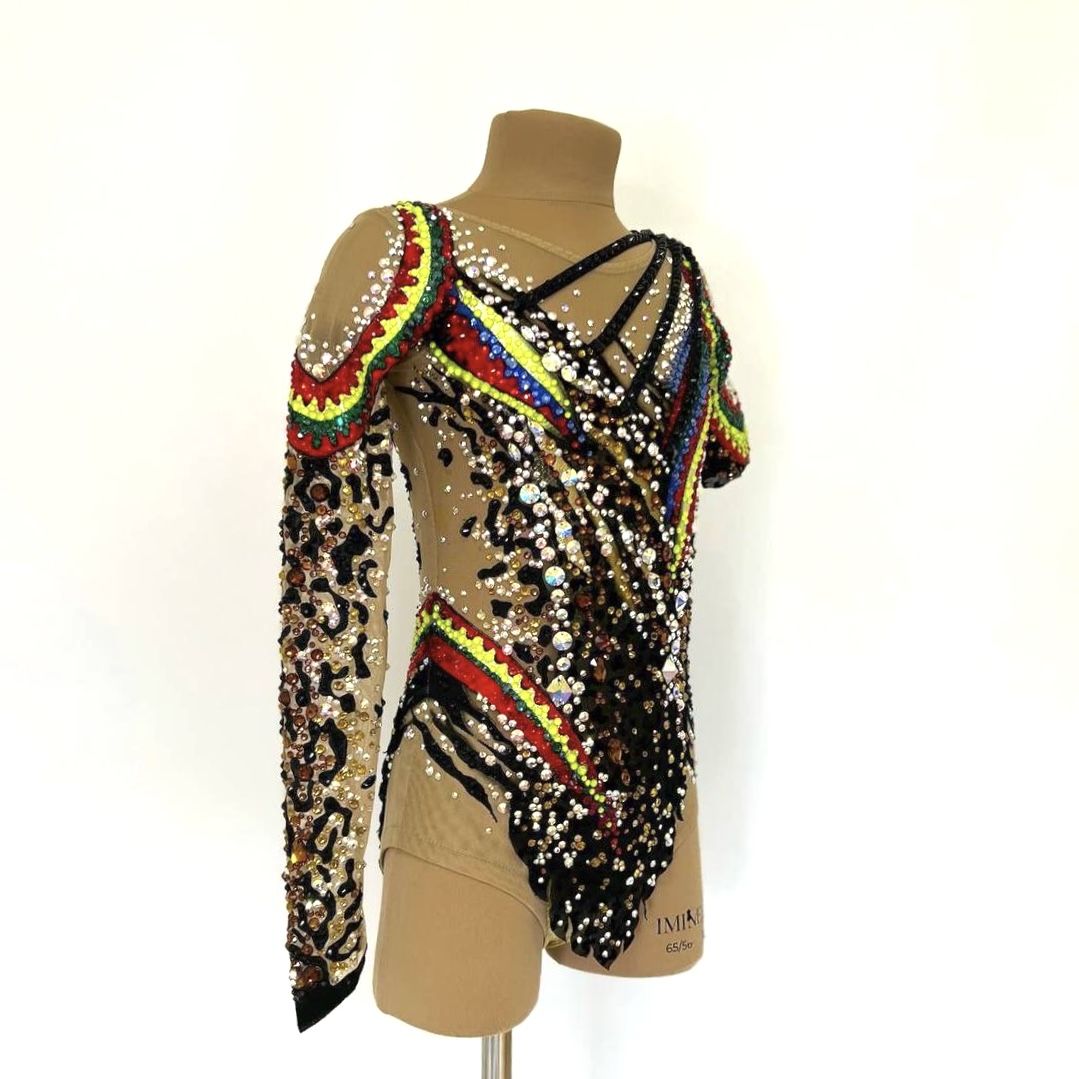 При создании купальника «Предводительница диких амазонок» вдохновились традициями индейцев и силой духа Амазонок. Воинственный и смелый, яркий и дикий. В нем гимнастка выходит на ковер как на бой, чтобы показать себя сильной. Она, как вождь племени, способна вести за собой и вдохновлять на победы. Леопардовый принт напоминает о том, что она быстра и изящна, как свирепая кошка. Яркие акценты в традиционном индейском стиле приковывают внимание к той, кто ничего не боится.