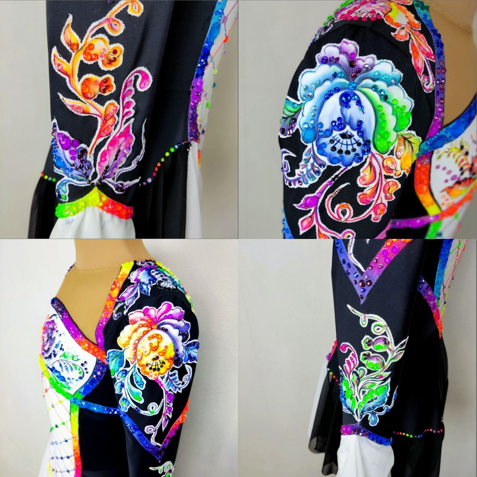 А что если соединить два этих красивых приема и добавить современных флуоресцентных оттенков? Если вырезать получившийся элемент из белого «фарфора" и поместить на черный жостовский фон?