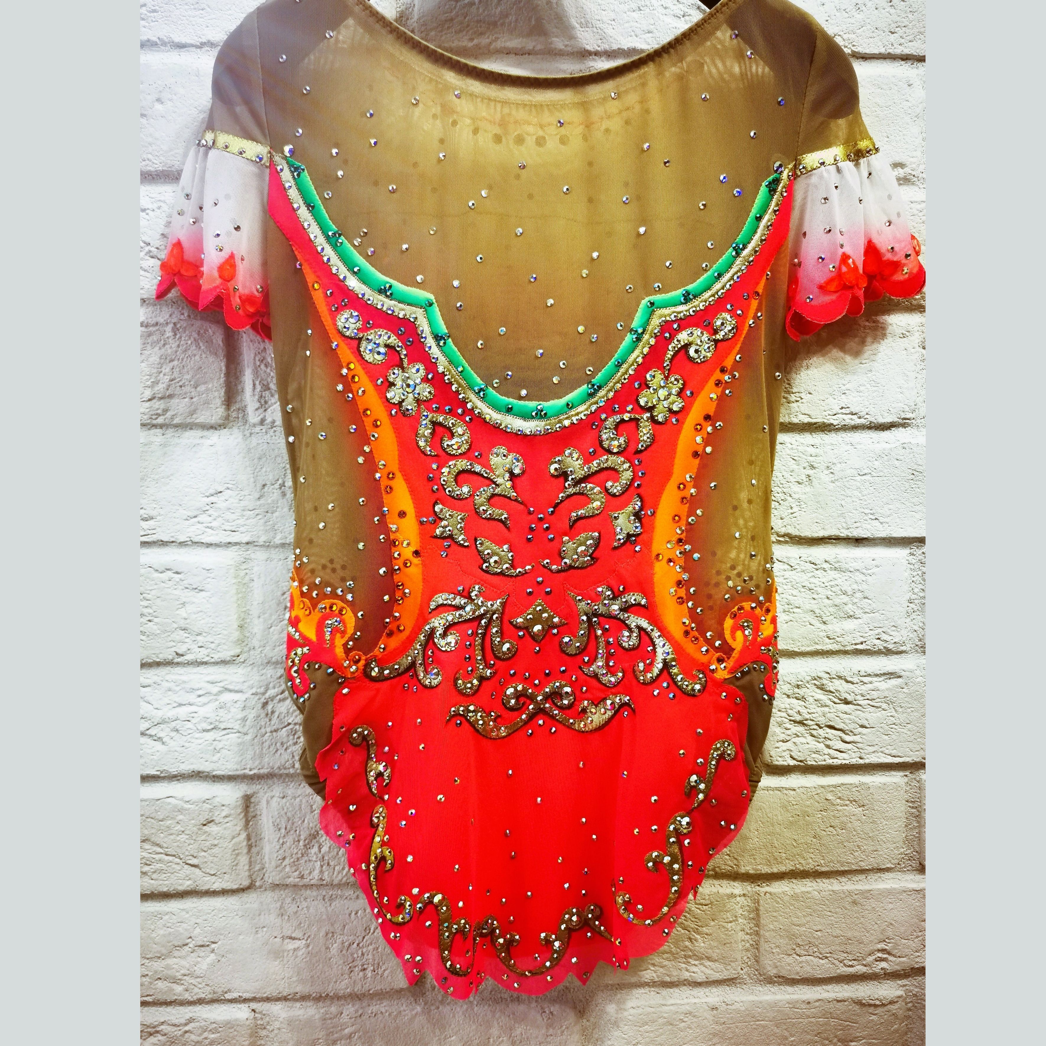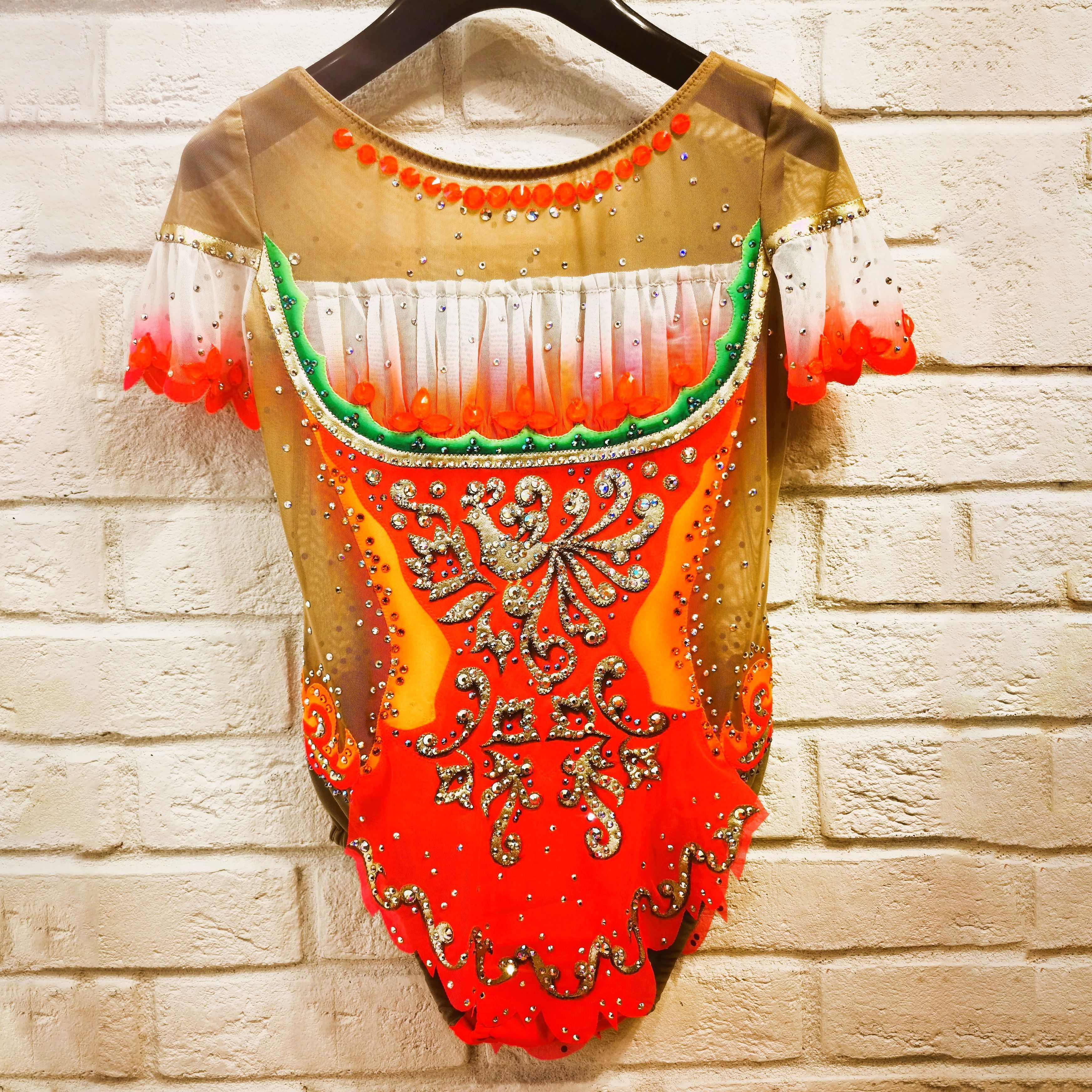 Соблюдена цветовая палитра, характерная для хохломской росписи: контраст золотого, алого и неонового, помогли достичь желаемого результата. Купальник получился ярким, выразительным и абсолютно соответствует поставленной программе.
