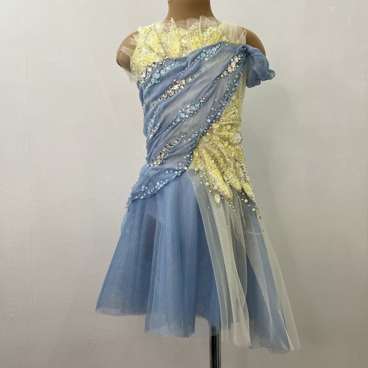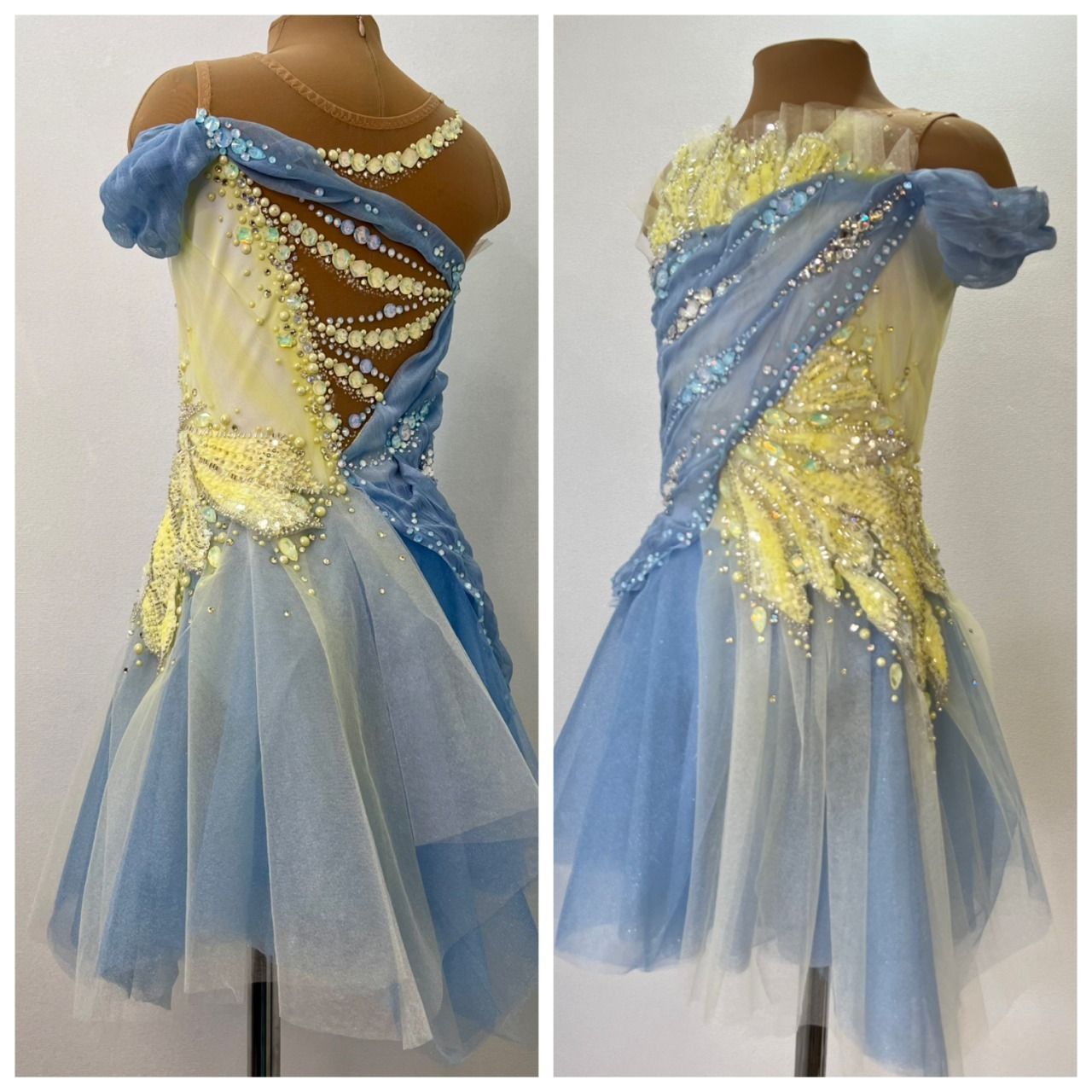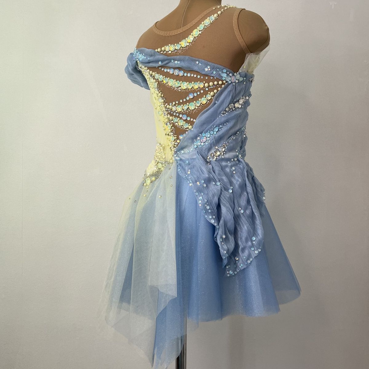 Платье в пастельных тонах, с букетом жёлтых роз, рассказывает о любви и нежности. Драпировка из голубой жатой сетки, как символ бушующих вод, омывающих Петербург, говорит о печальном расставании влюблённых.