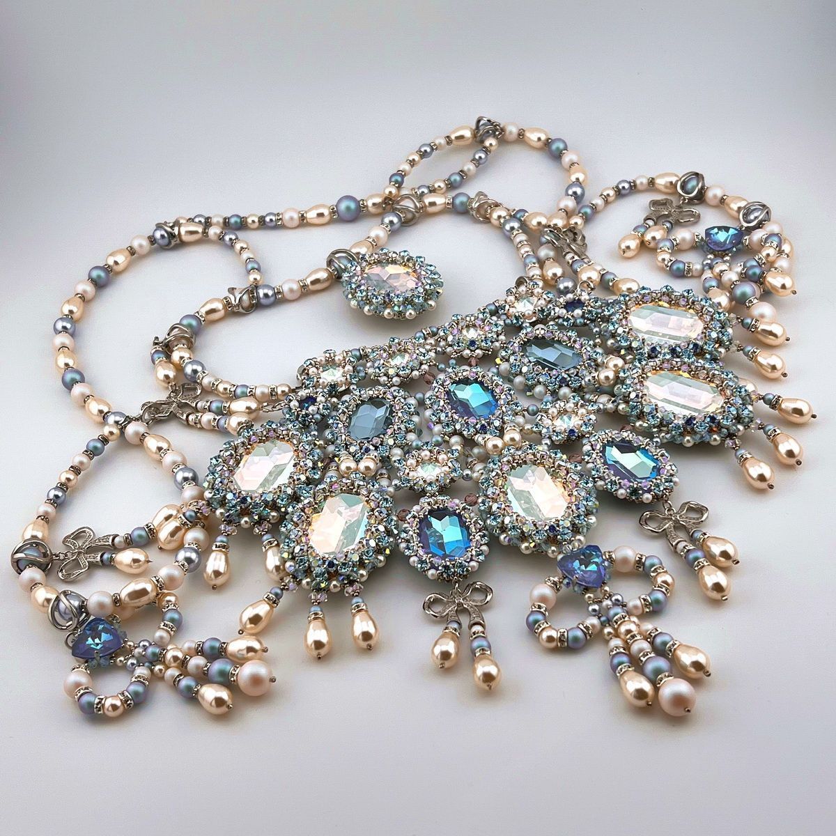 Вдохновленное образом королевы, чья красота и достоинство пережили века, колье «Анна Австрийская» соединяет в себе блеск власти и нежность сердца. Переливы кристаллов напоминают холодное сияние дворцовых залов, где отражается свет свечей, а вязь жемчуга словно соткана из тайн и вздохов великосветских балов.